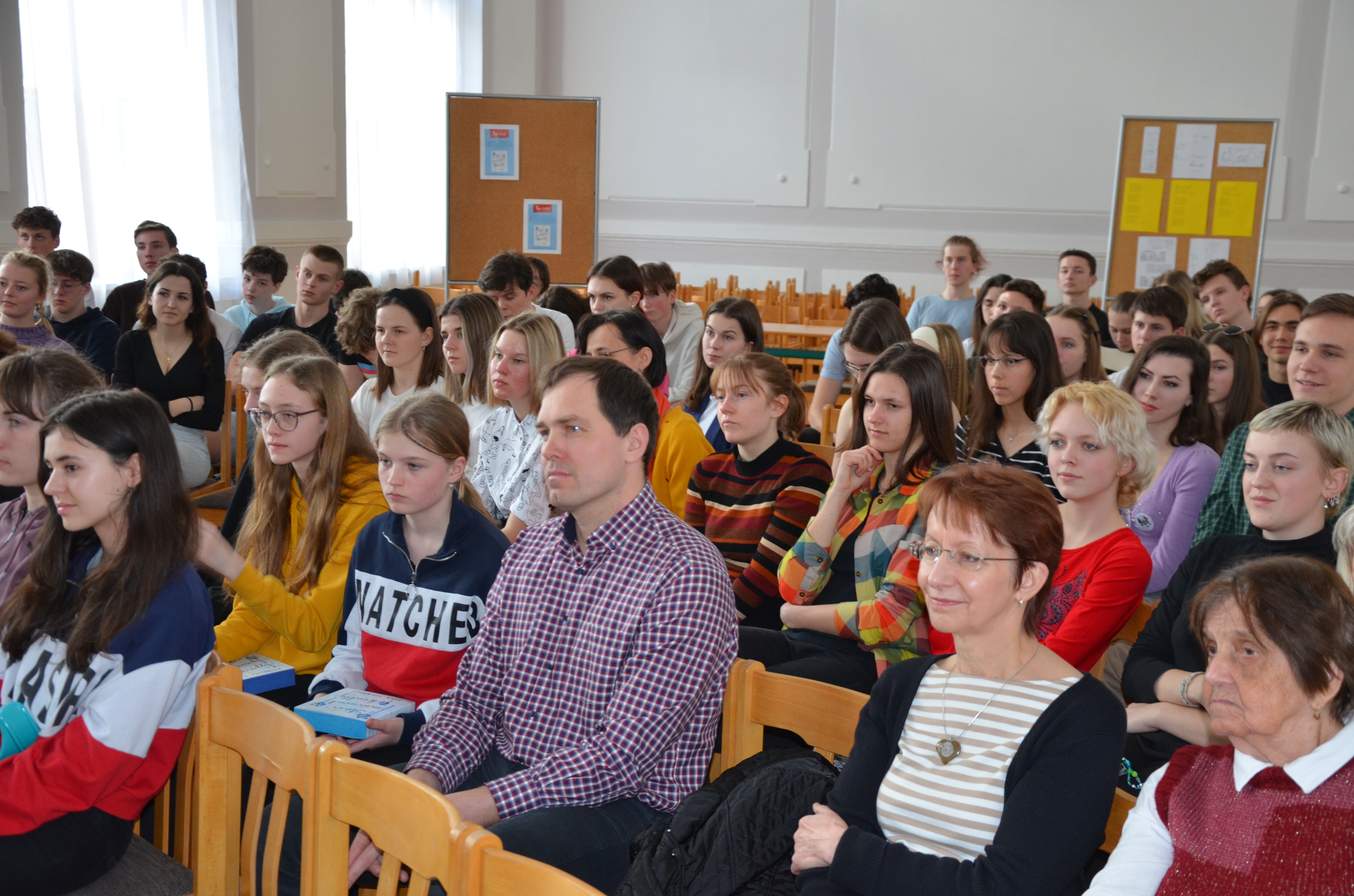 V úterý 21. března studenti převážně vyšších ročníků gymnázia a další zúčastnění hosté vyslechli v takřka zaplněné aule školy autorské čtení z knihy Stačí mávnout křídly. S devatenáctiletou autorkou Sárou Topinkovou poté besedovali o zrodu knihy a výběru jejího názvu, námětu, postavách, zápletkách, míře fikce, ale i spoustě témat, která kniha nabízí. V závěru besedy došlo i na autogramiádu.