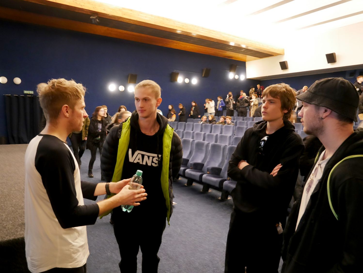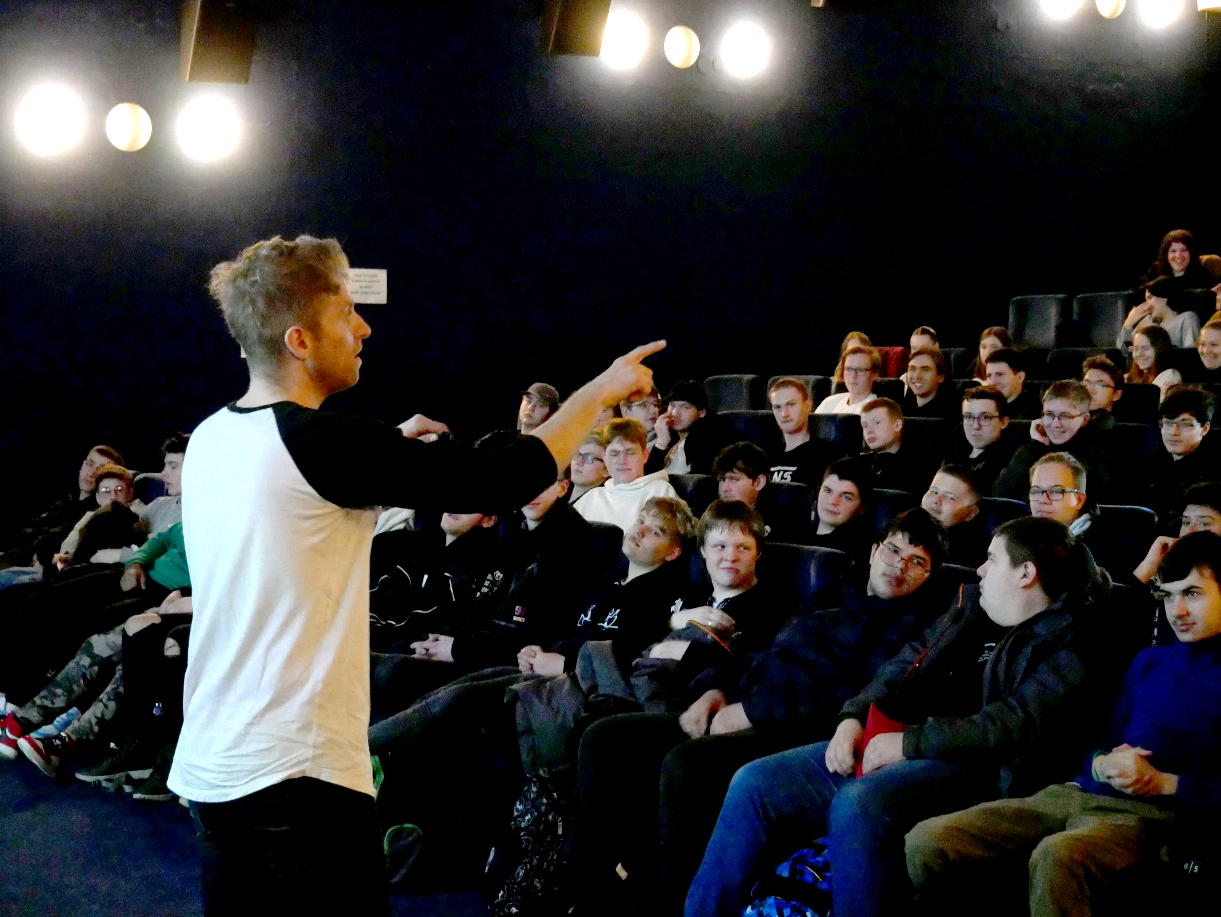 Zaujmout na hodinu a půl téměř plné kino středoškoláků a učňů je věc takřka nemožná. To vám řekne každý, kdo byl před podobný úkol kdy postaven. Petru Harazinovi, frontmanovi havířovské kapely Nebe, se to ale povedlo. Ne však jako zpěvákovi, ale coby vypravěči, který popisoval svou cestu na dno a zase zpět. Na besedu se středoškoláky ho pozvala komise zdravého města a zahájit ji přišel starosta Alexandros Kaminaras.