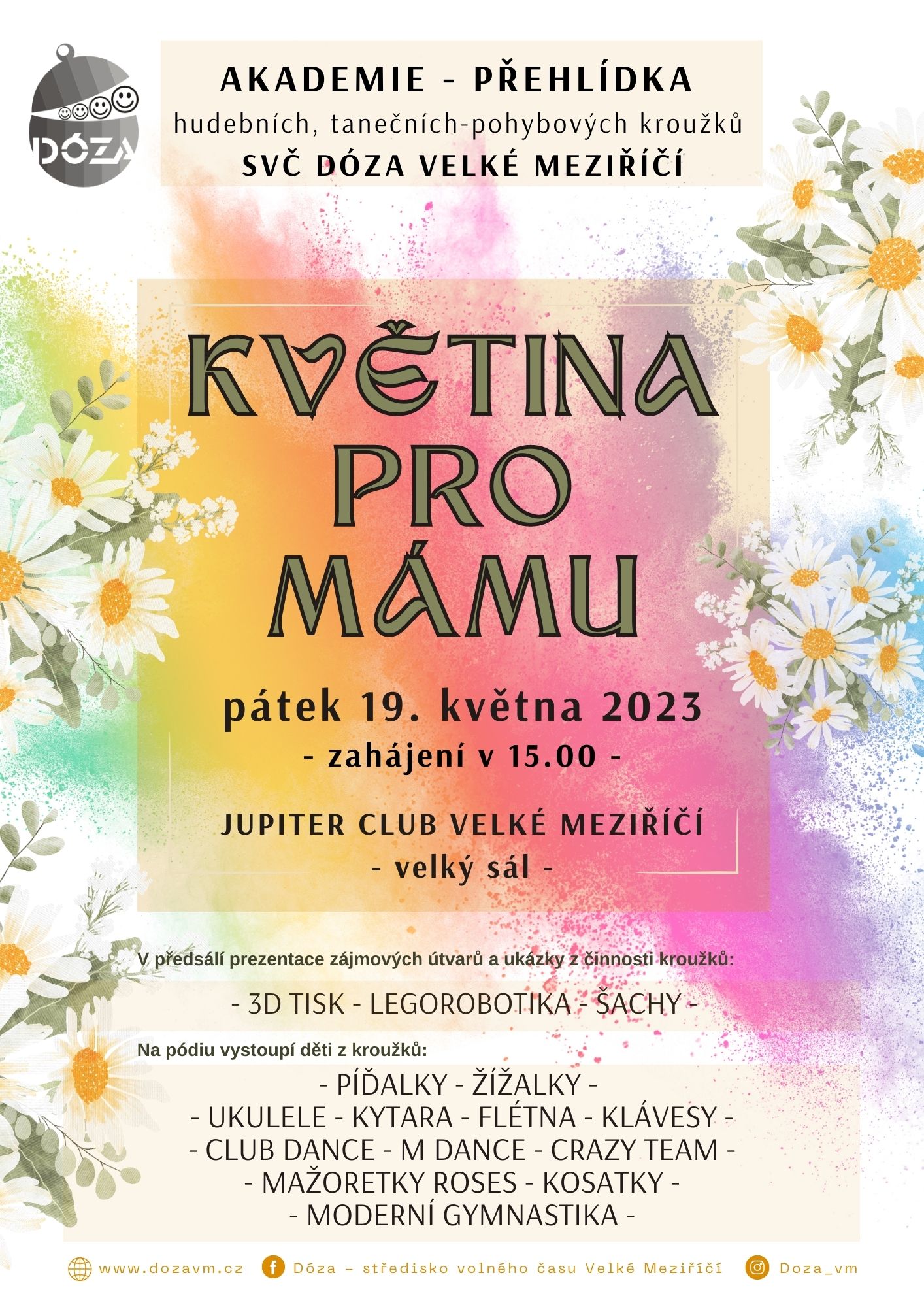 Nebudou chybět ani ukázky z činnosti ostatních zájmových útvarů Dózy – tvořivých a jinak tematicky zaměřených.