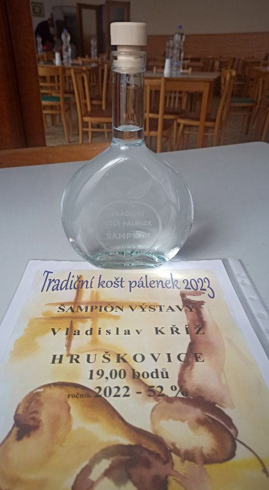 Nyní čekal komisaře úkol nejnáročnější, stanovit absolutního vítěze – šampióna. Po důkladném a svědomitém očichávání a převalování v ústech získaly 18,97 bodů z 20 možných dvě pálenky: hruškovice pana Vladislava Kříže z Řečice a višňovice Jakuba Kuřátka z Měřína. Proto musela nastoupit subkomise, která stanovila definitivního vítěze. Šampionem se o 0,03 bodu stala hruškovice.