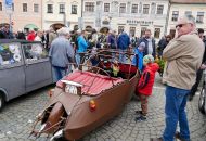 Sraz se konal pod hlavičkou Veteránů Humpolec, ale s organizací letos pomáhali převážně místní. A nutno uznat, že organizace probíhala jasně, vlídně a v pohodě. Nejstarší vůz Tatra 12 přijel až z roku 1930. Překrásný vůz s nablýskanou mosazí, který nešlo přehlédnout. Hned za ním byla Tatra z roku 1933, pak „Áčko" z roku 1937 a tak dál. Tyto nejstarší kousky zaparkovali jejich majitelé na čestném místě před radnicí, aby budily zasloužený respekt. Nejnovější vůz nedělního srazu byl sporťáček, který sestavili učni ze Světlé a mohli ho zde představit jako lákavý poutač umu žáků místní školy řemesel.