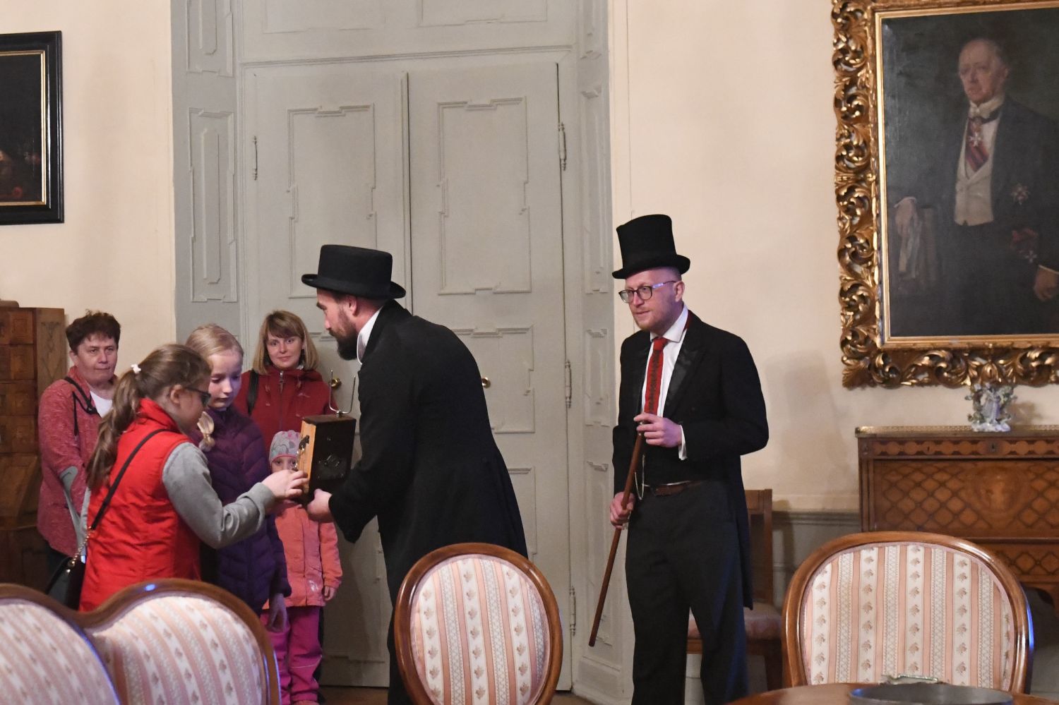 Beznadějně vyprodané sobotní noční prohlídky přenesly návštěvníky za hrabětem Františkem Harrachem a společně se stali svědky neobyčejných setkání. Díky stroji času se v mohl hrabě Harrach potkat se svým dědečkem při výuce šermu, vidět vnoučata, jak vyvolávají jeho ducha a připravovat se na cestu do dalekého Sarajeva.