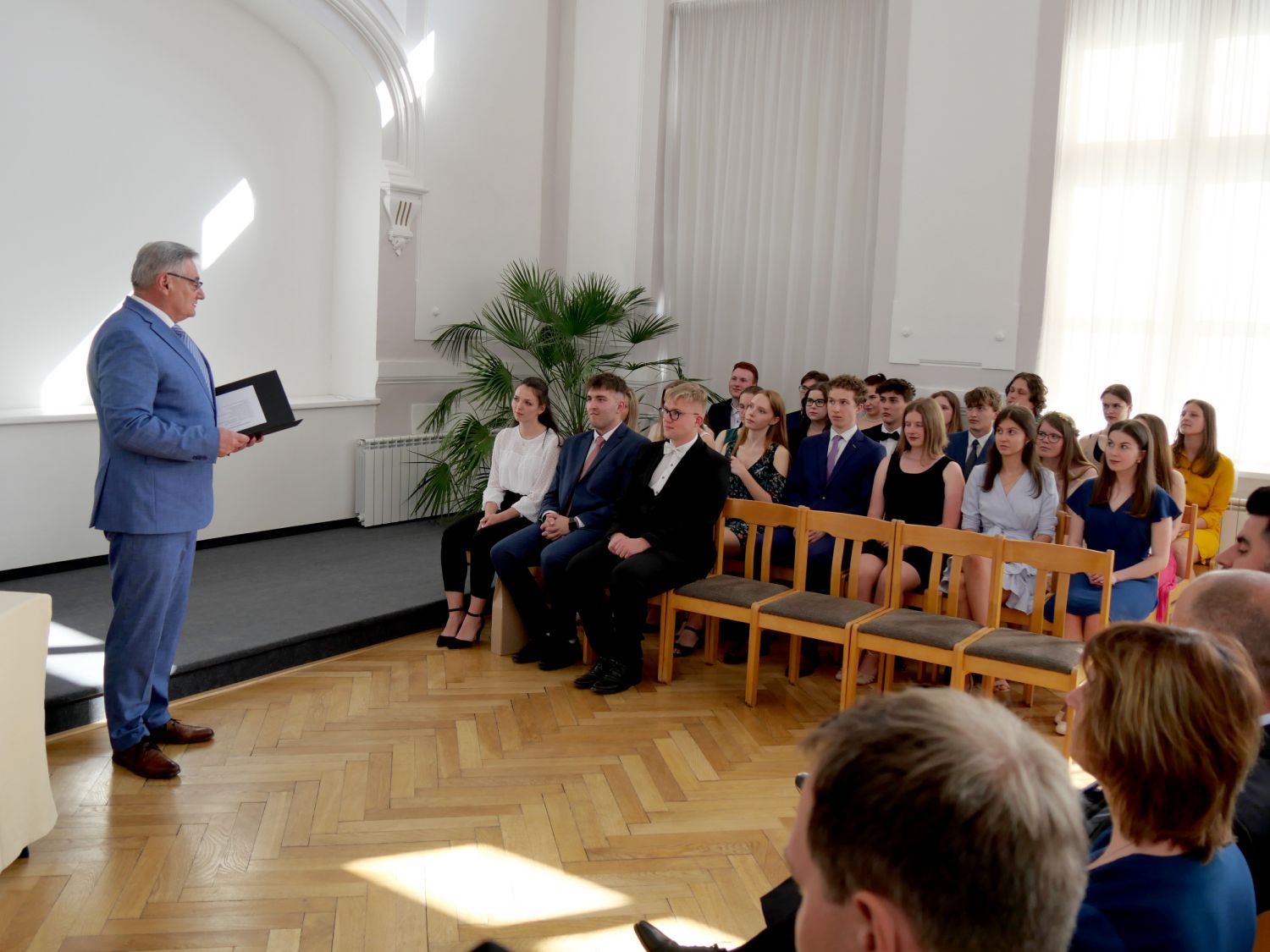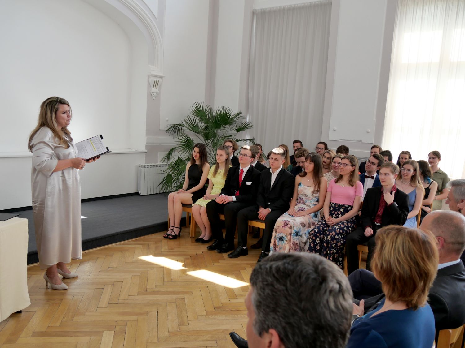 To také zaznělo v jeho projevu k absolventům. On sám poděkoval škole za to, že ho naučila řádně česky, což vysvětlil jako schopnost vyjadřovat i složité myšlenky srozumitelně a jednoduše. I ostatní řečníci dávali novopečeným maturantům rady, jak si počínat v nastávajícím životě dospělých. Škola jim dala dobrý start do života a na nich teď je, aby jím kráčeli se ctí a odhodláním.