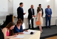 Slavnostní okamžiky obohatila kulturní vystoupení studentského pěveckého sboru, trumpetisty, akordeonisty a flétnistek. Na úplný konec dostali všichni přítomní lístečky s textem studentské hymny a aulou zaznělo Gaudeamus igitur sborem.