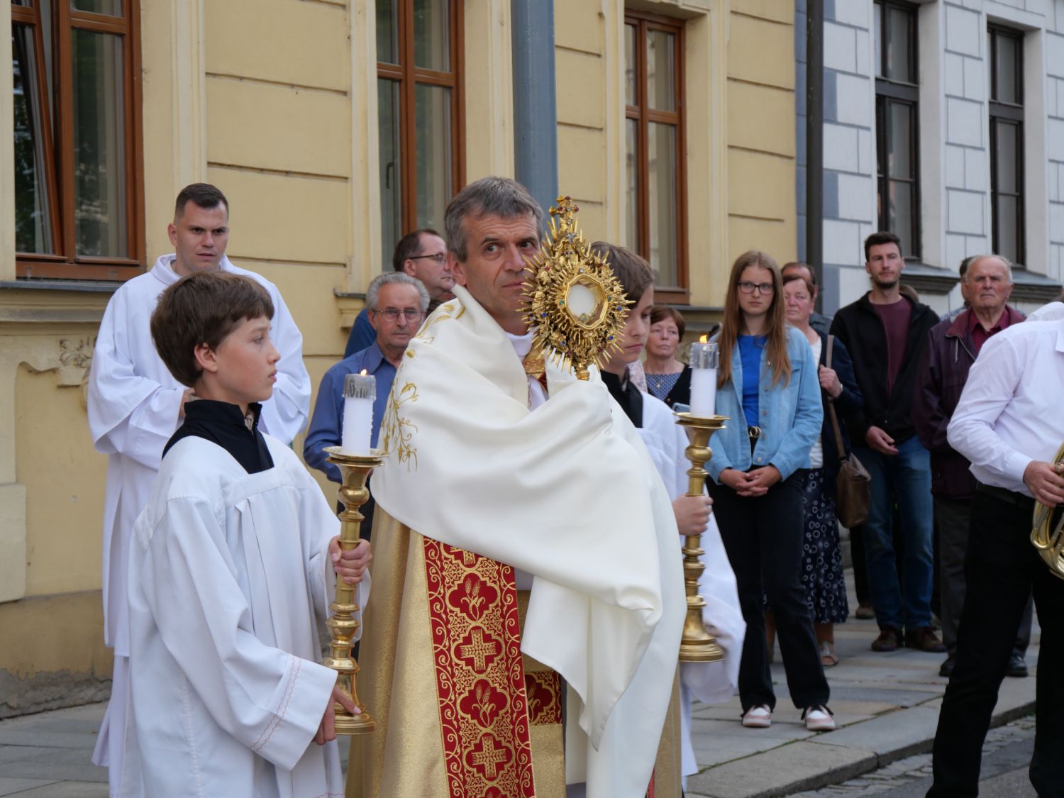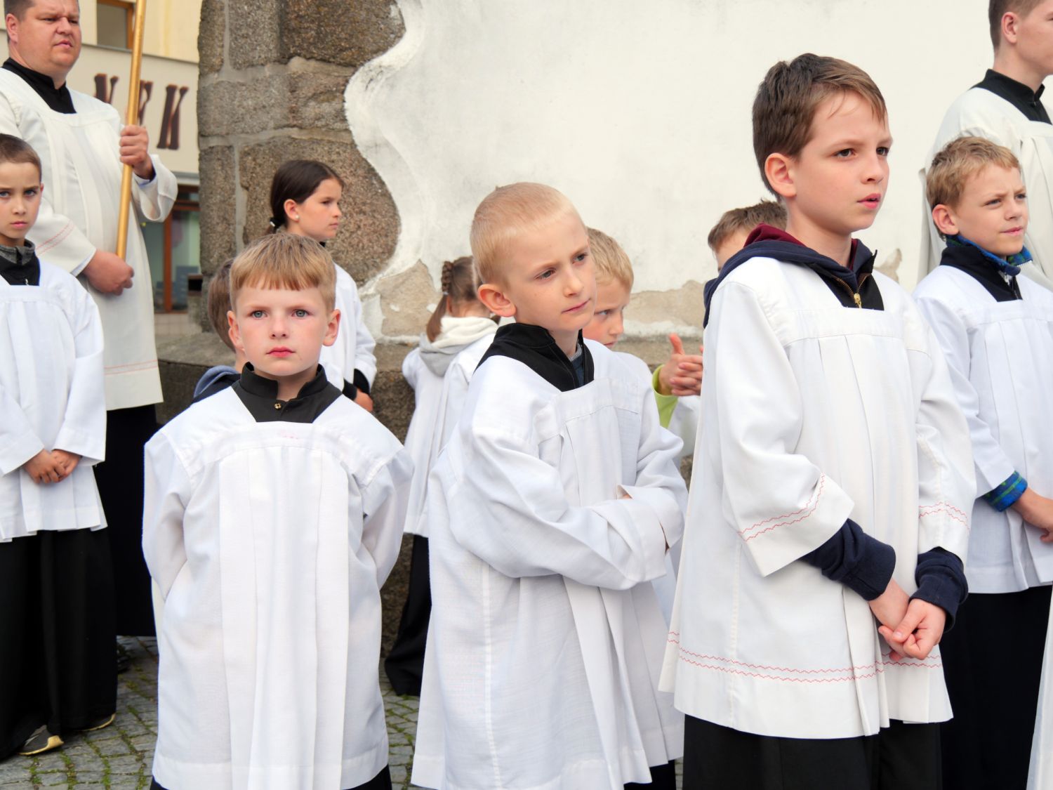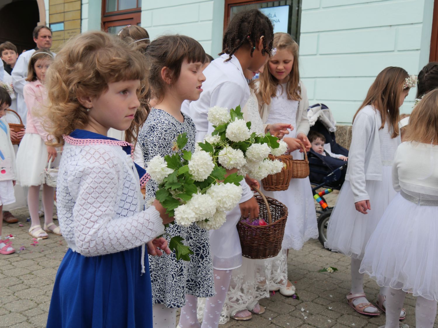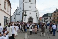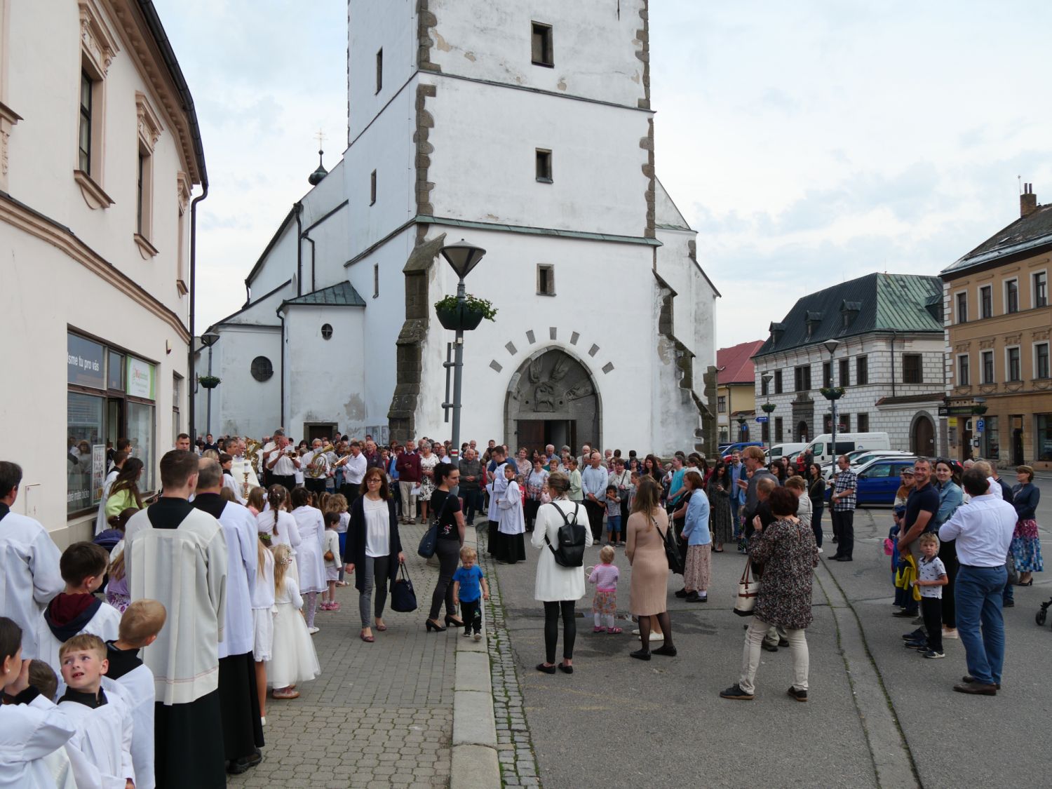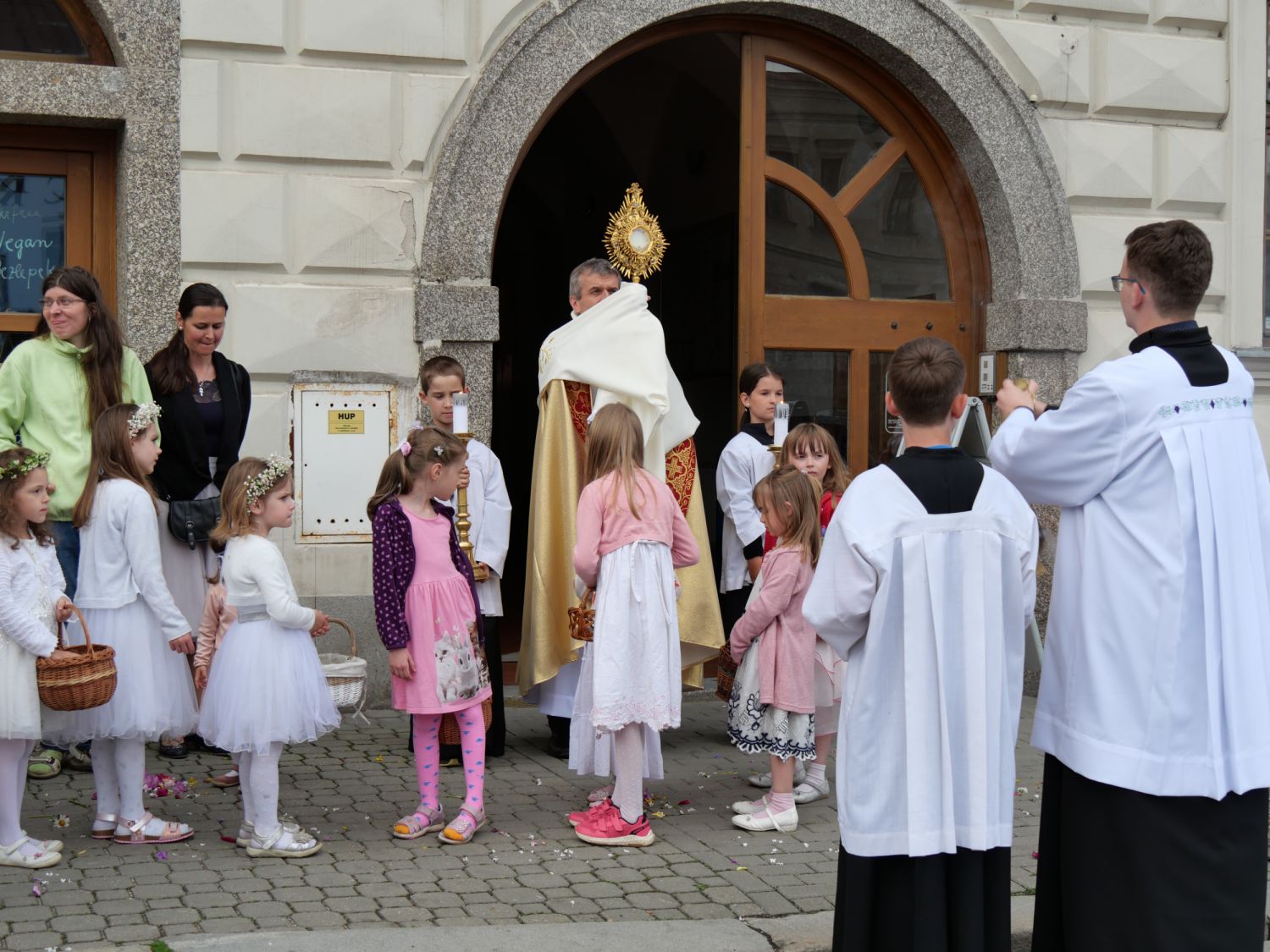 Velkomeziříčská farnost slavila Boží Tělo. Náměstím prošel početný průvod se sedmi zastaveními. Zazněly při nich modlitby a požehnání pro sedm významných oblastí společenského života, a to rodinu, politiku, média, umění, vzdělání, podnikání a církev.