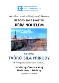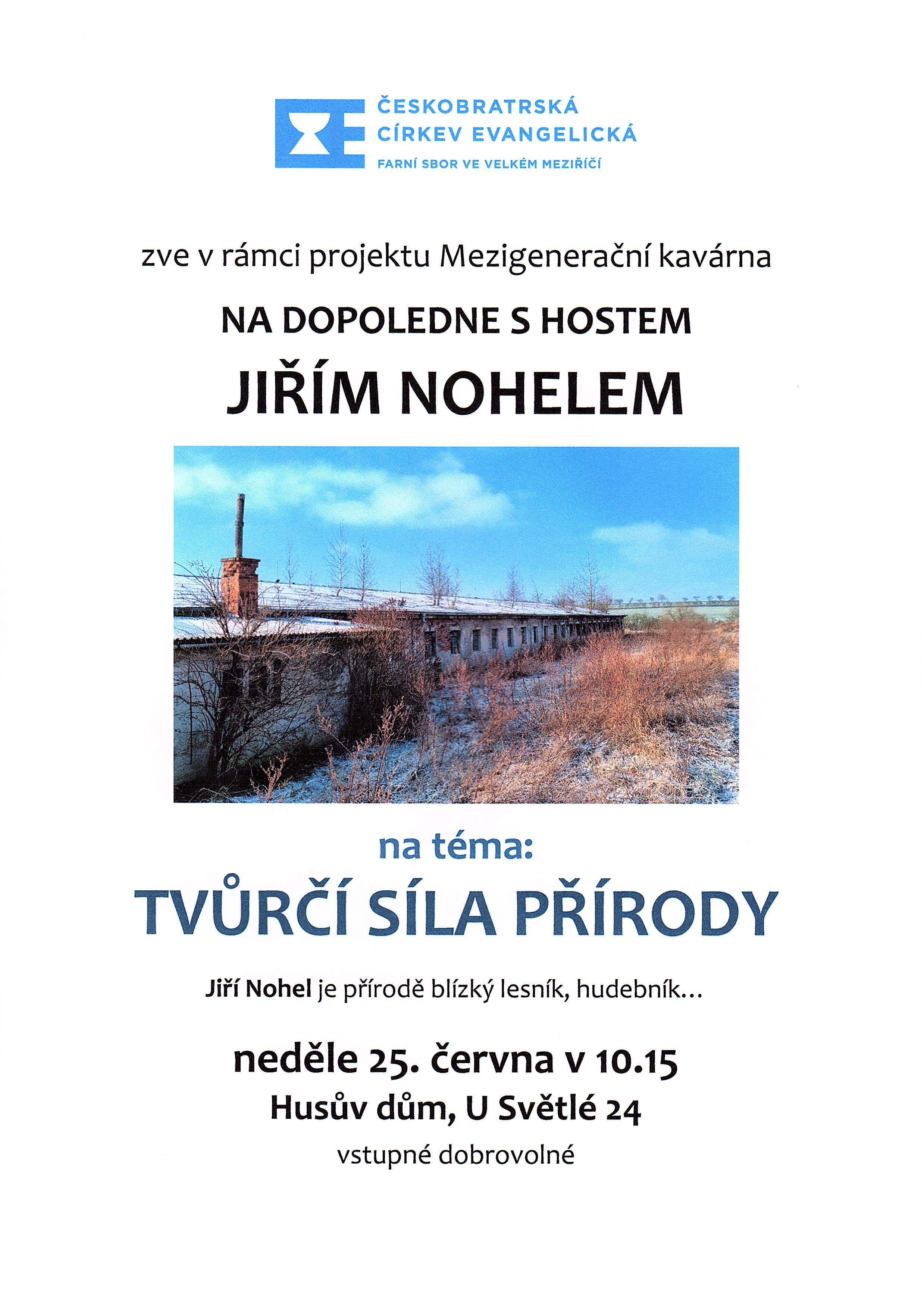 Českobratrská církev evangelická zve na dopoledne s Jiřím Nohelem, to se uskuteční již tuto neděli 25. června v 10:15 hodin. Akce proběhne v rámci projektu Mezigenerační kavárna.