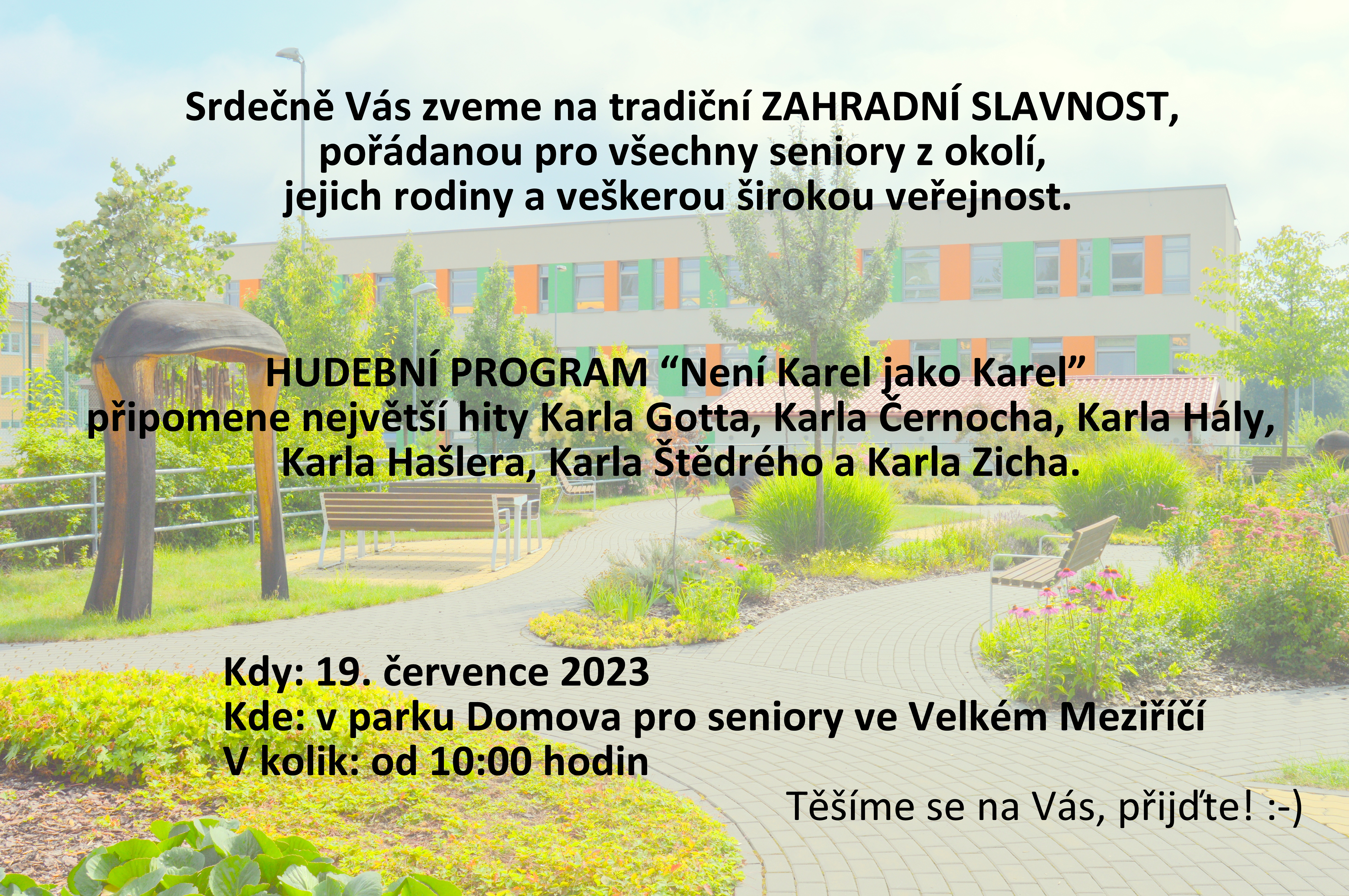 Pracovníci i obyvatelé domu pro seniory (DPS) vás srdečně zvou na zahradní slavnost. Ta se uskuteční již tuto středu od 10 hodin v parku u DPS, ulice Zdenky Vorlové.