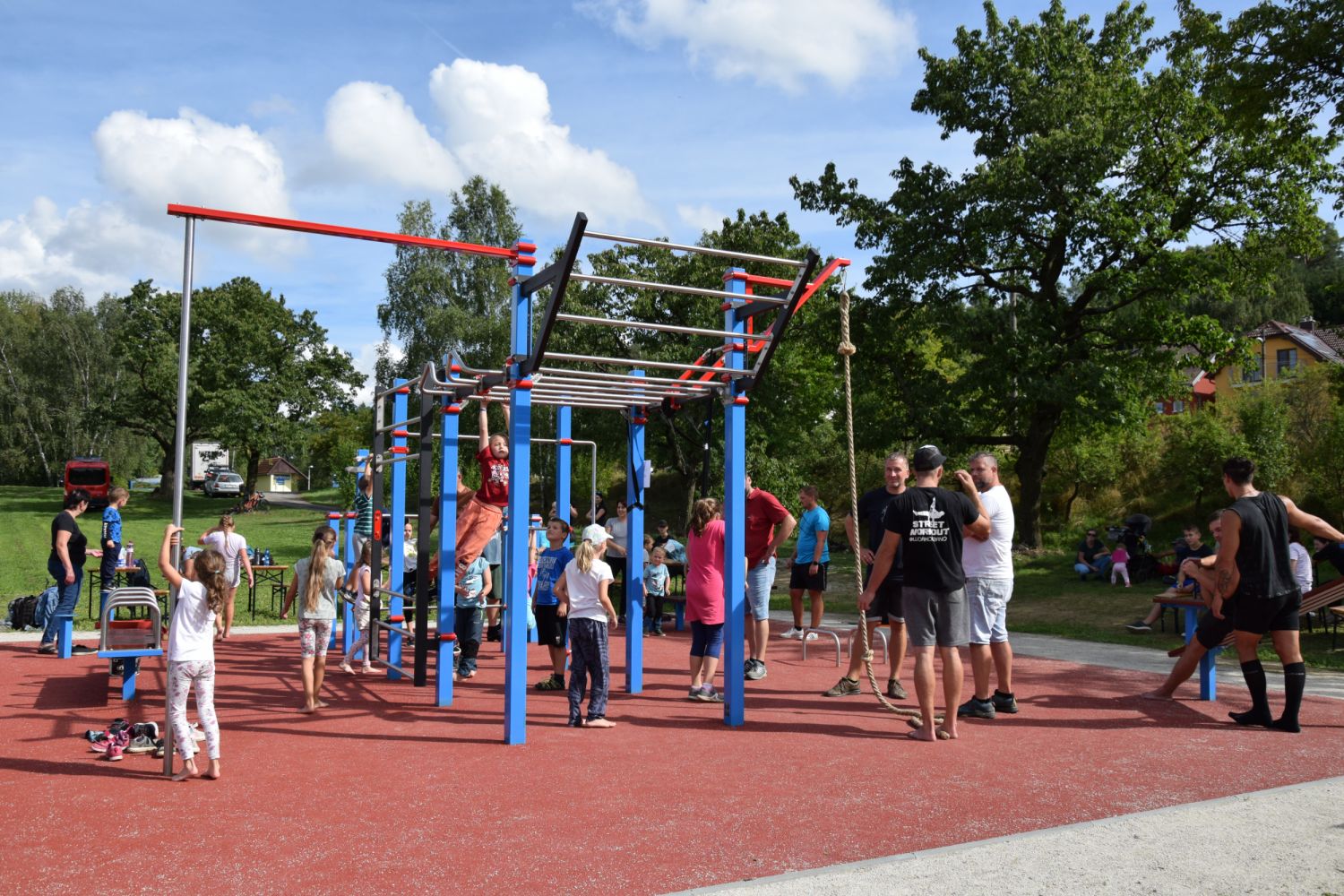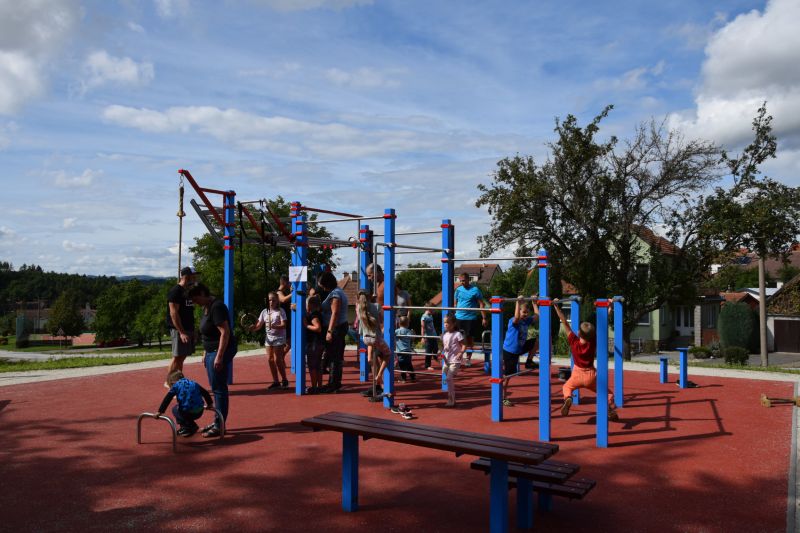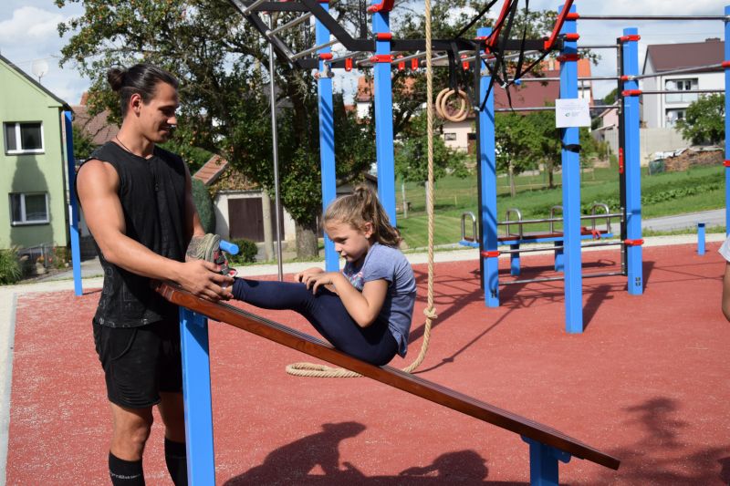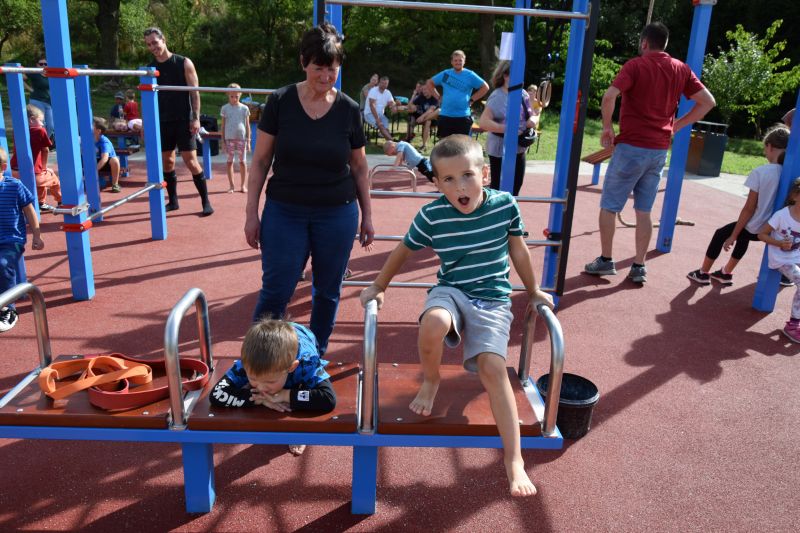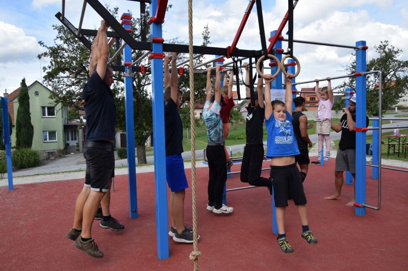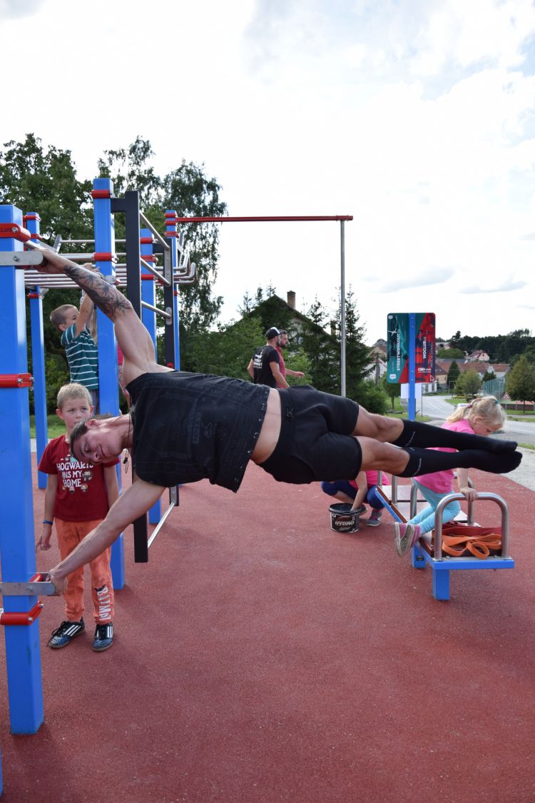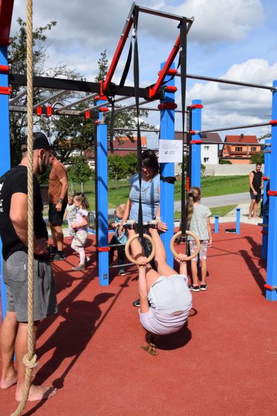 Starosta obce nejprve všechny přivítal a seznámil s průběhem výstavby hřiště a s celou realizací, včetně informací o získané dotaci na výstavbu, která činila 80% ze způsobilých výdajů. Poté se slova ujal Michal Vrtal, který působí jako trenér a postupně seznámil všechny s možnostmi, které jednotlivé cvičební prvky nabízejí a že mohou cvičit nejen mladí, ale i dříve narození, začátečníci i pokročilí cvičenci. Následovalo mnoho dotazů, od nedočkavých sportovců, kteří se živě zajímali o každý prvek. Připraveny byly také soutěže a jejich vítězové získali poukazy na nákup sportovního zboží. Soutěže byly rozděleny do několika kategorií a účastnit se tak mohli malí i velcí. Po každé soutěži byla krátká pauza a opět možnost pro dotazy, jak správně cvičit. Patrně nejatraktivnější částí bylo samotné exhibiční vystoupení, které předvedli všichni tři profesionálové, a z užaslých pohledů všech přítomných bylo vidět, že někteří nevěří svým očím. Během odpoledne se potom mohli dostatečně vyřádit úplně všichni a jejich nadšení jim jistě vydrží i pro další pravidelné cvičení.