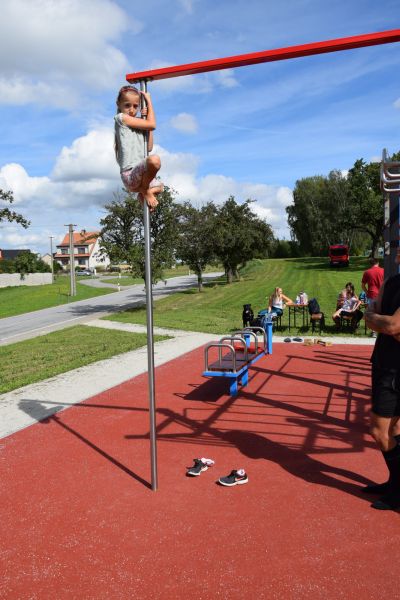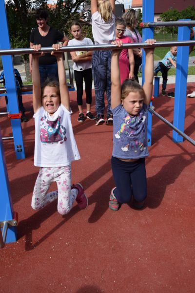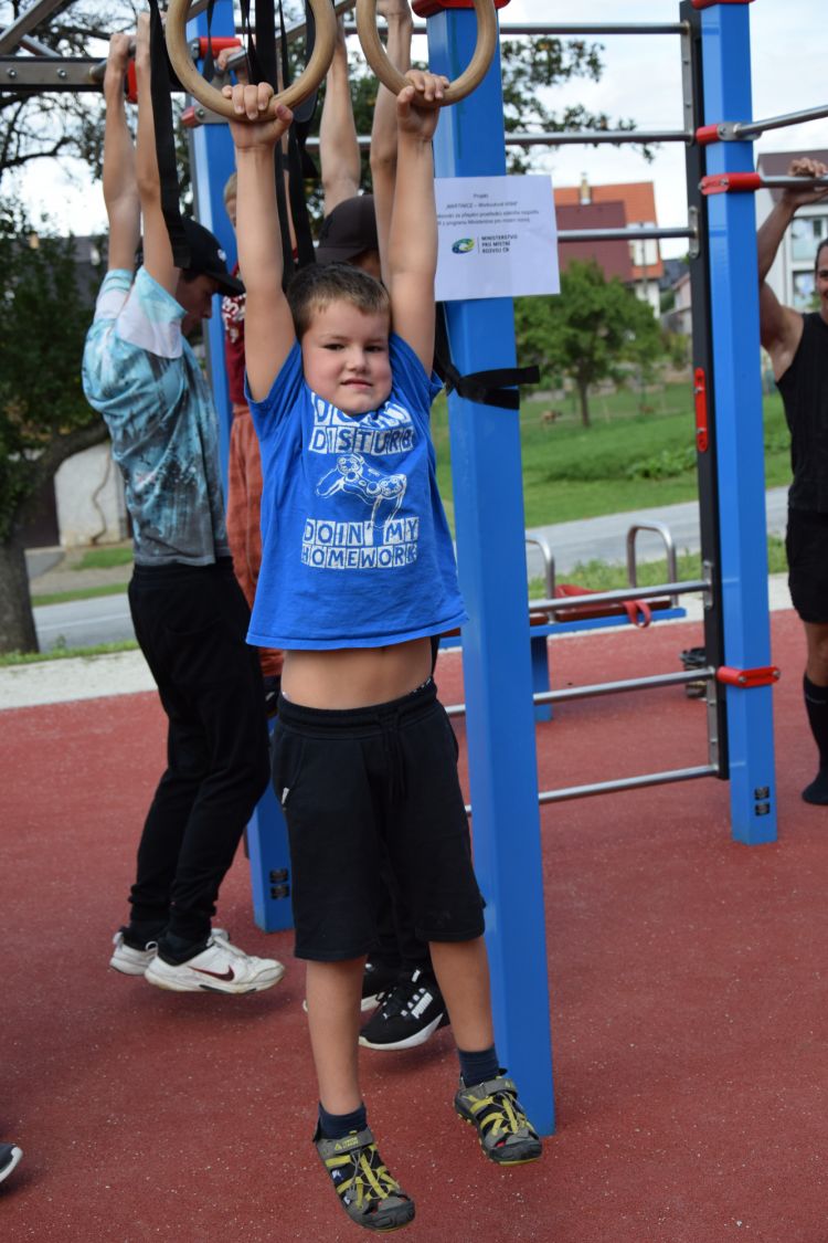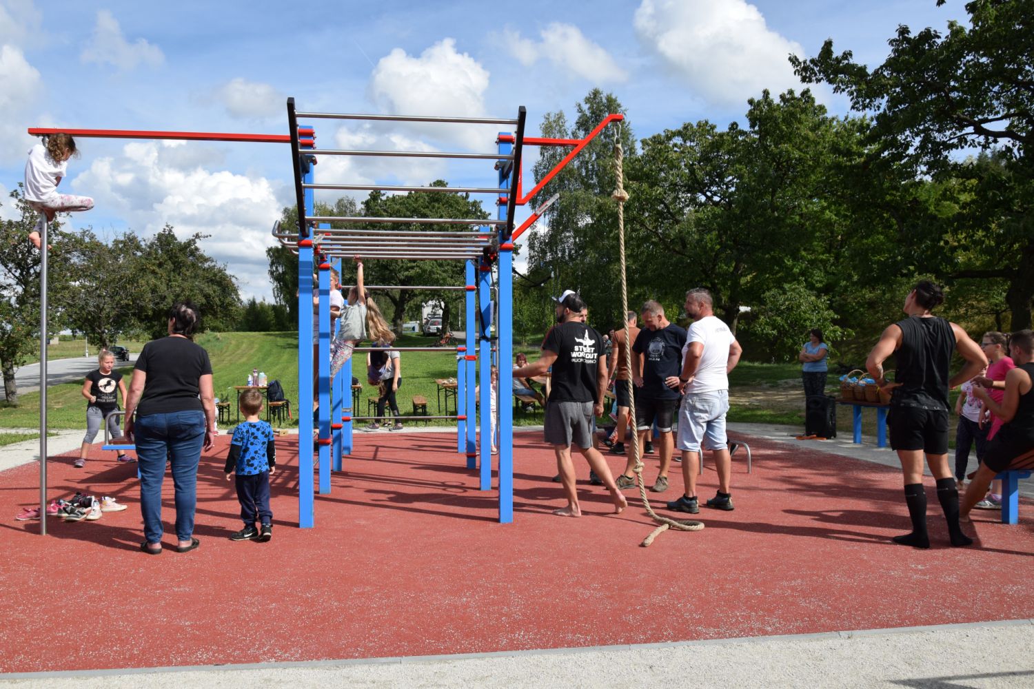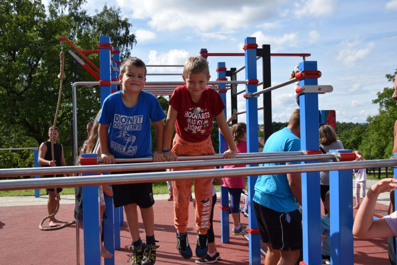 Starosta obce nejprve všechny přivítal a seznámil s průběhem výstavby hřiště a s celou realizací, včetně informací o získané dotaci na výstavbu, která činila 80% ze způsobilých výdajů. Poté se slova ujal Michal Vrtal, který působí jako trenér a postupně seznámil všechny s možnostmi, které jednotlivé cvičební prvky nabízejí a že mohou cvičit nejen mladí, ale i dříve narození, začátečníci i pokročilí cvičenci. Následovalo mnoho dotazů, od nedočkavých sportovců, kteří se živě zajímali o každý prvek. Připraveny byly také soutěže a jejich vítězové získali poukazy na nákup sportovního zboží. Soutěže byly rozděleny do několika kategorií a účastnit se tak mohli malí i velcí. Po každé soutěži byla krátká pauza a opět možnost pro dotazy, jak správně cvičit. Patrně nejatraktivnější částí bylo samotné exhibiční vystoupení, které předvedli všichni tři profesionálové, a z užaslých pohledů všech přítomných bylo vidět, že někteří nevěří svým očím. Během odpoledne se potom mohli dostatečně vyřádit úplně všichni a jejich nadšení jim jistě vydrží i pro další pravidelné cvičení.