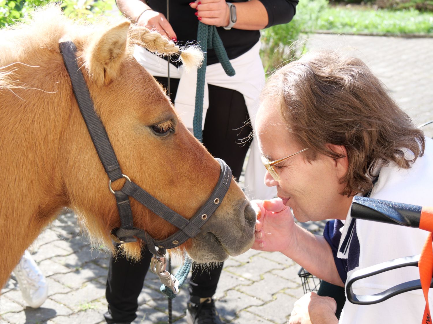 Ze všeho nejdřív proběhlo seznámení s poníky. „Jedenáctiletý Lexík a třináctiletý Puntík dnes běžně vozí děti, skáčou na závodech. Dřív se tak dobře neměli. Nynější majitel je zachránil před sežráním ze zookoutku na Třebíčsku, kde se měli stát potravou jiných zvířat,“ popsala Michaela Prokešová z jezdeckého centra, která se zejména o Lexíka stará od samého začátku. „Chodíme s nimi i mezi seniory, protože oba jsou velmi klidní. Dokonce i k ležícím a ti to velmi oceňují, tam většinou vidím nejvíc emocí,“ dodala.