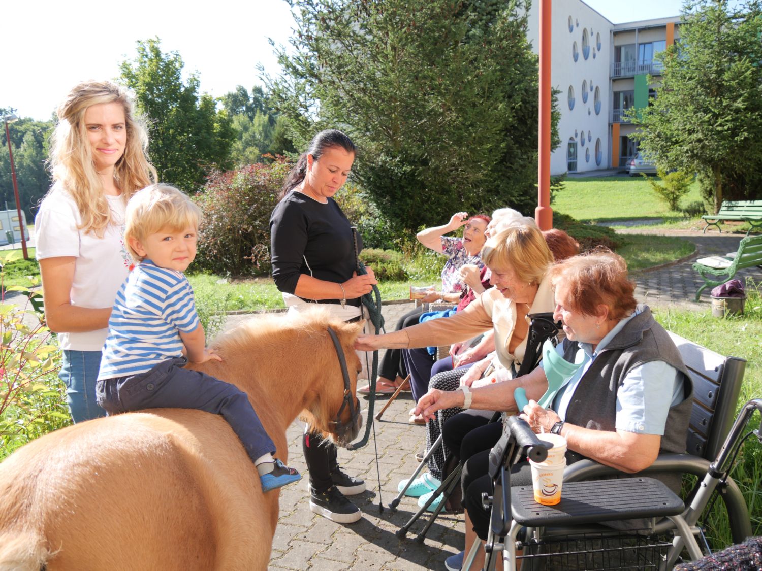 Příjemné úterní dopoledne s poníky prožili obyvatelé domu s pečovatelskou službou, domova pro seniory i děti ze skupiny Rarášek.
