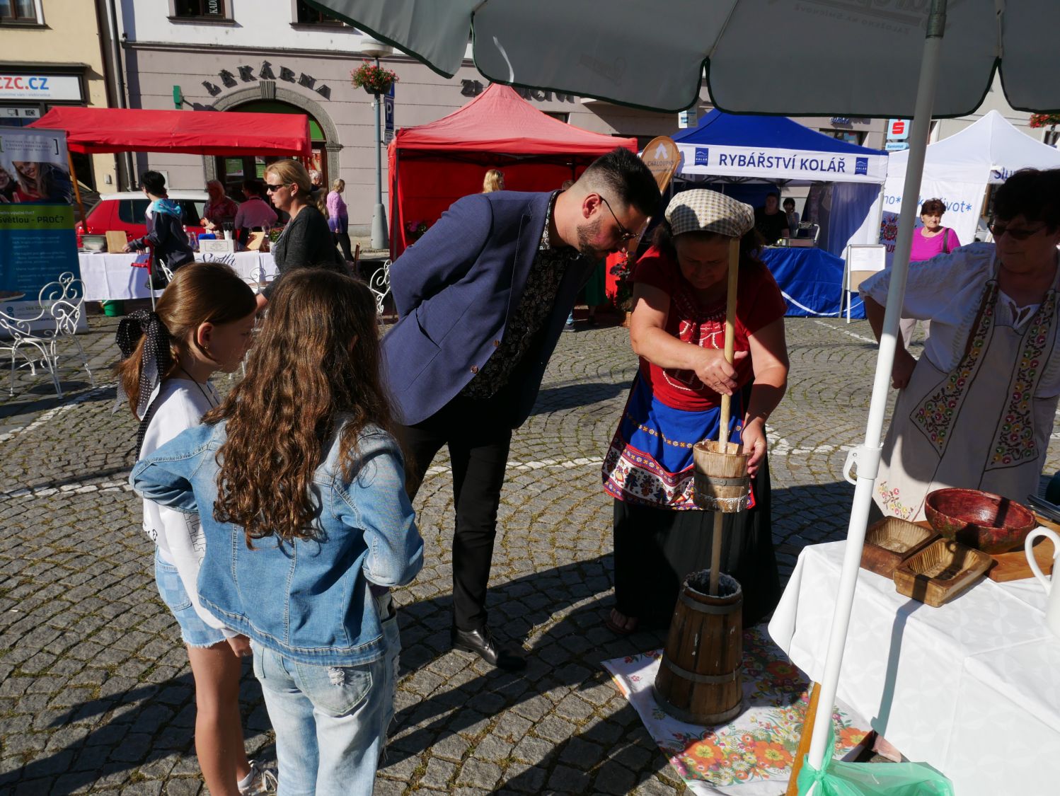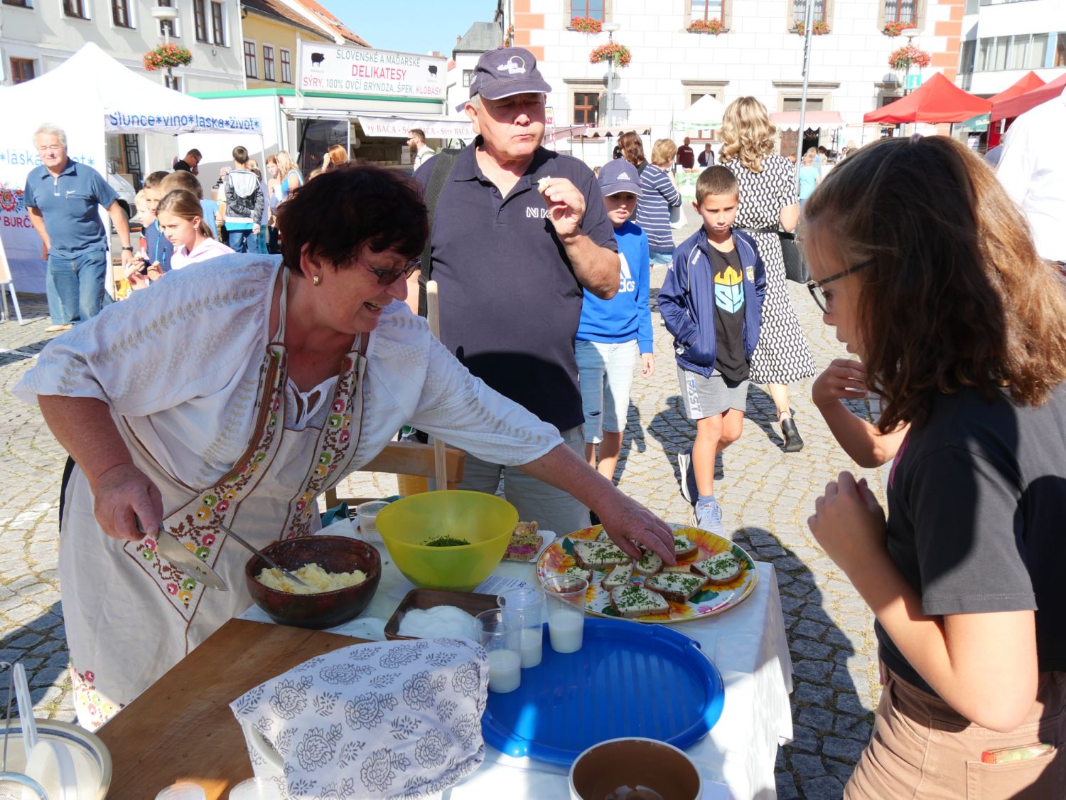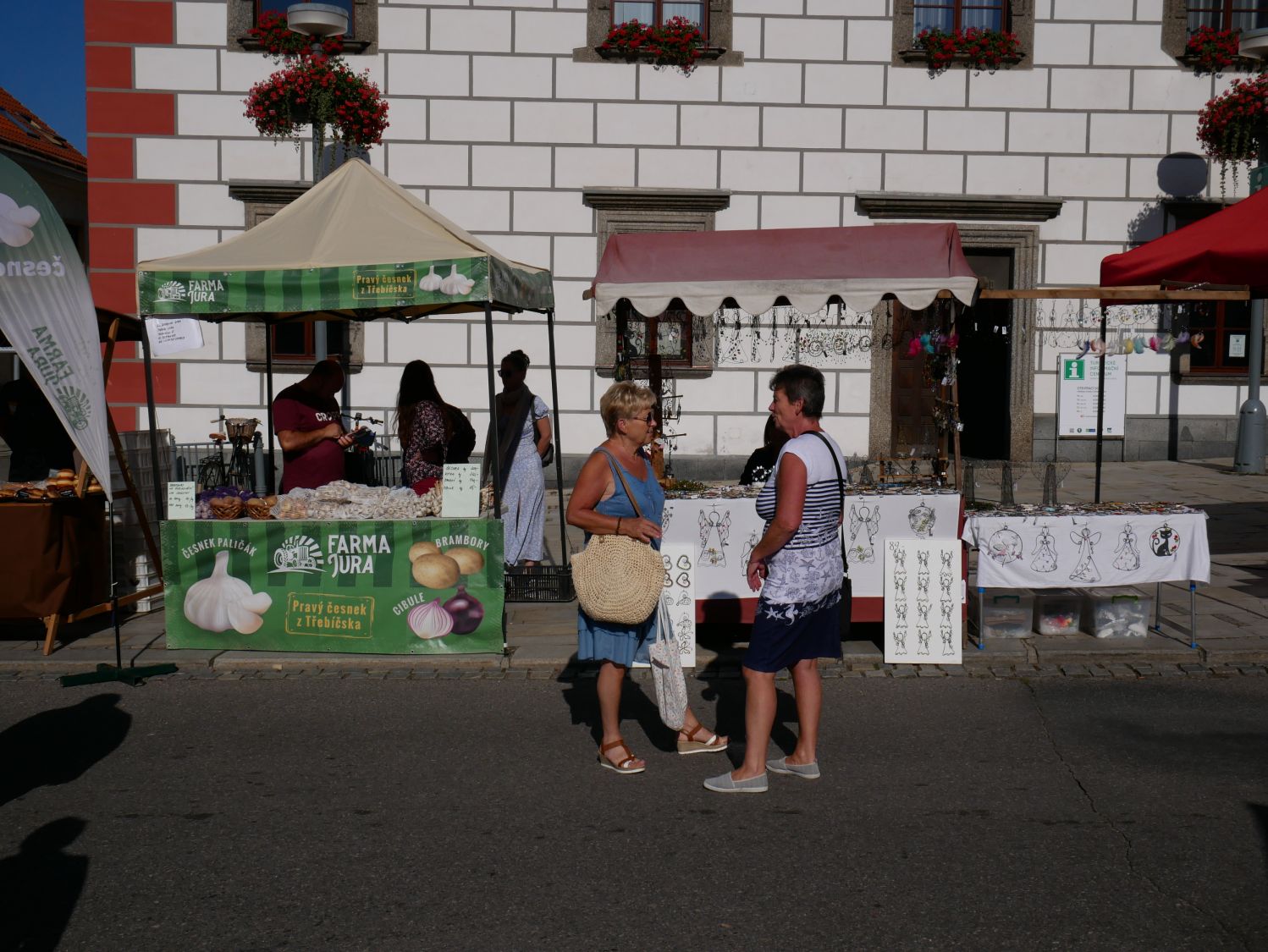 Nejen z pódia se ale linuly úchvatné vůně, ale i ze stánků rozmístěných po náměstí. A tak město provoněly ryby z Rybářství Kolář, kvalitní moravský kmín z Petrávče, slovenské a maďarské klobásky a sýry, česnek z Třebíčska, bylinkové čaje z místních zdrojů nebo čerstvý moravský burčák. Velké pozornosti se těšil malý stánek, kde se stloukalo máslo, které pak mohl každý ochutnat a zjistit, jak má takové pravé máslo vlastně chutnat.