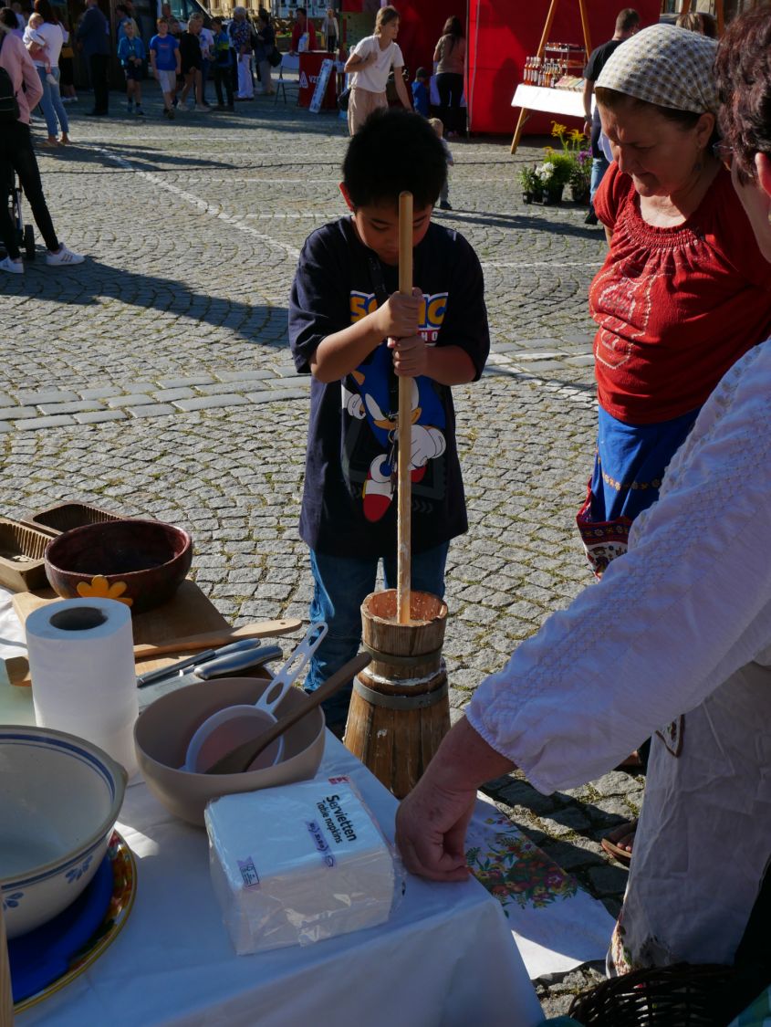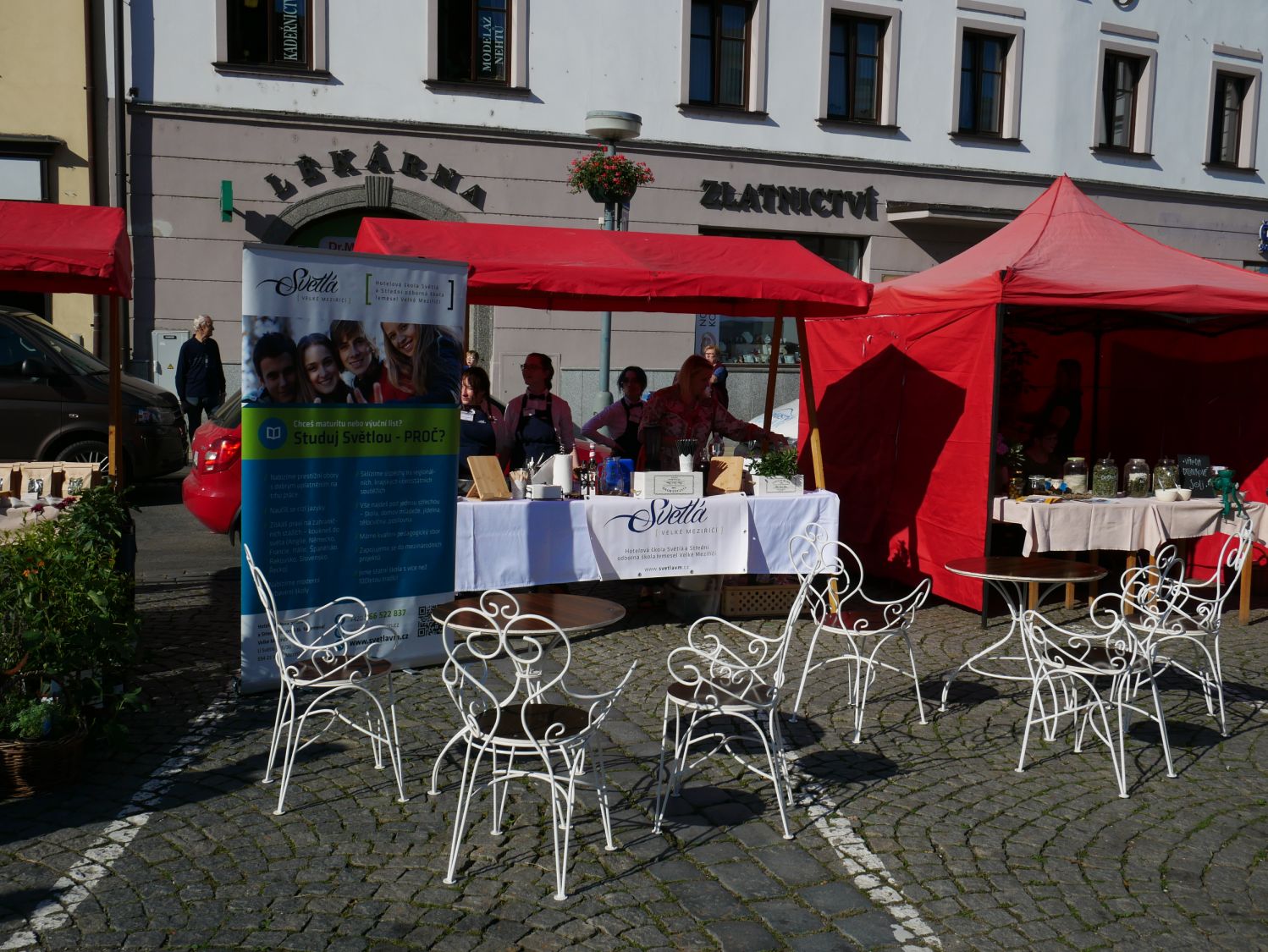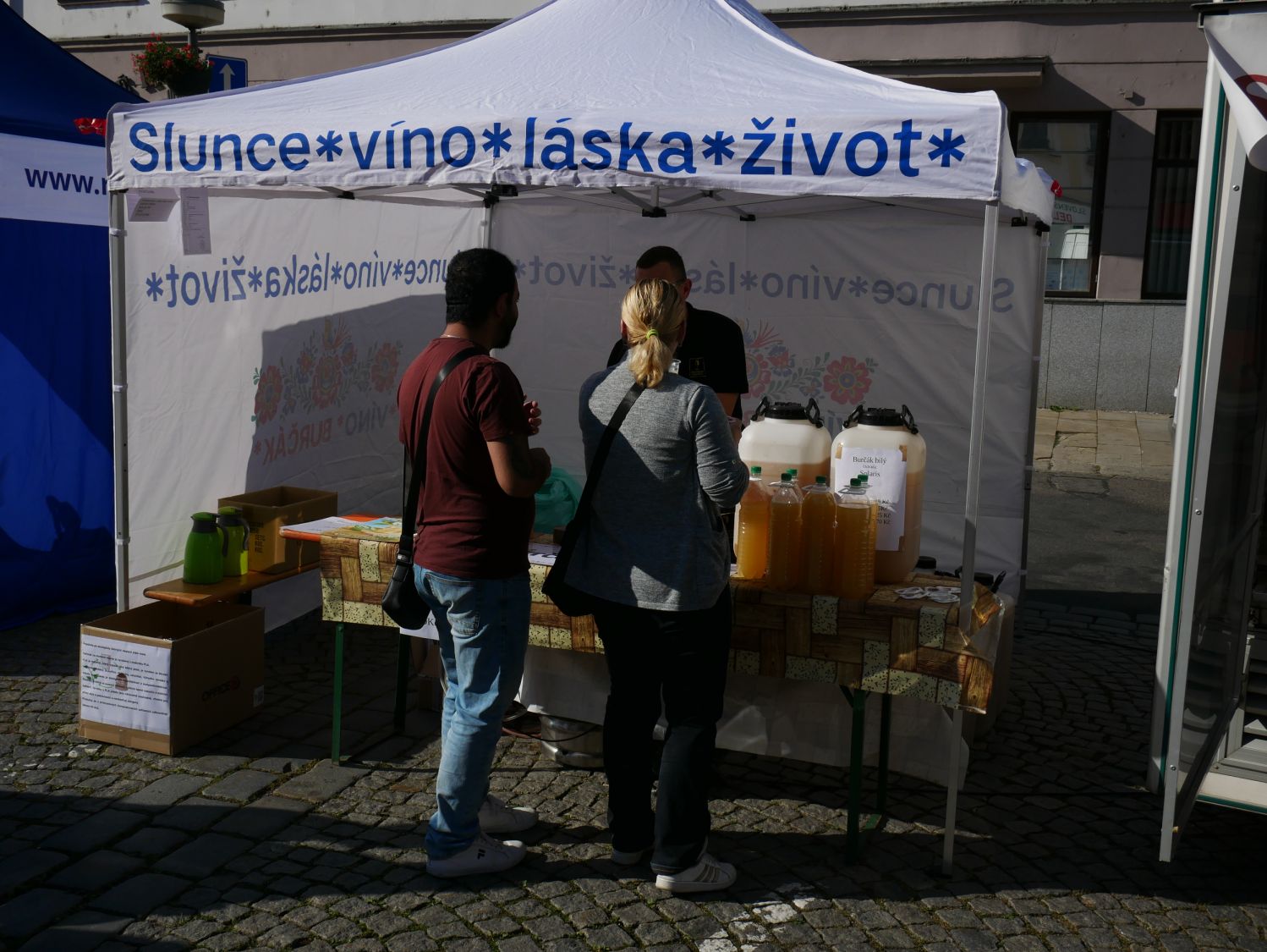 Nejen z pódia se ale linuly úchvatné vůně, ale i ze stánků rozmístěných po náměstí. A tak město provoněly ryby z Rybářství Kolář, kvalitní moravský kmín z Petrávče, slovenské a maďarské klobásky a sýry, česnek z Třebíčska, bylinkové čaje z místních zdrojů nebo čerstvý moravský burčák. Velké pozornosti se těšil malý stánek, kde se stloukalo máslo, které pak mohl každý ochutnat a zjistit, jak má takové pravé máslo vlastně chutnat.
