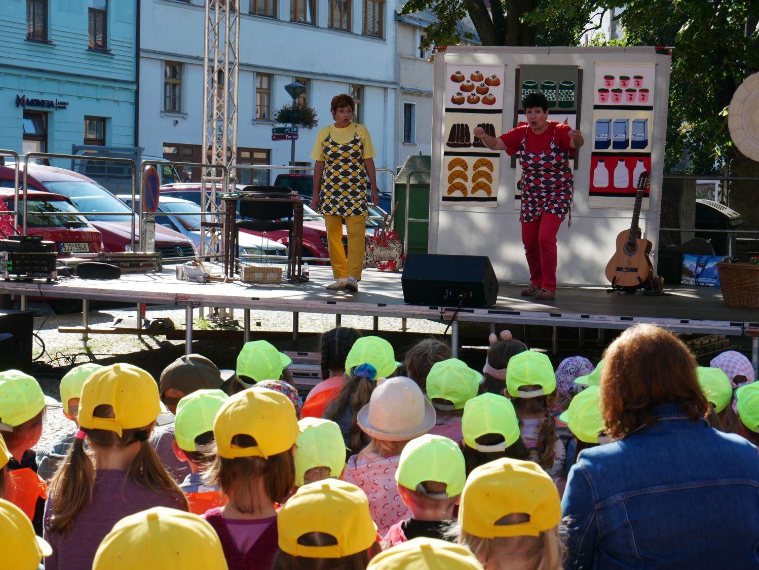 A pak už se přítomné děti bavily s Brněnskými písničkovými tetinami, které přijely do Velkého Meziříčí s programem Tetiny v kuchyni. Je pak na pódiu vystřídali pánové Pavel Brichzin a Karel Jonák a jejich kuchařská show.