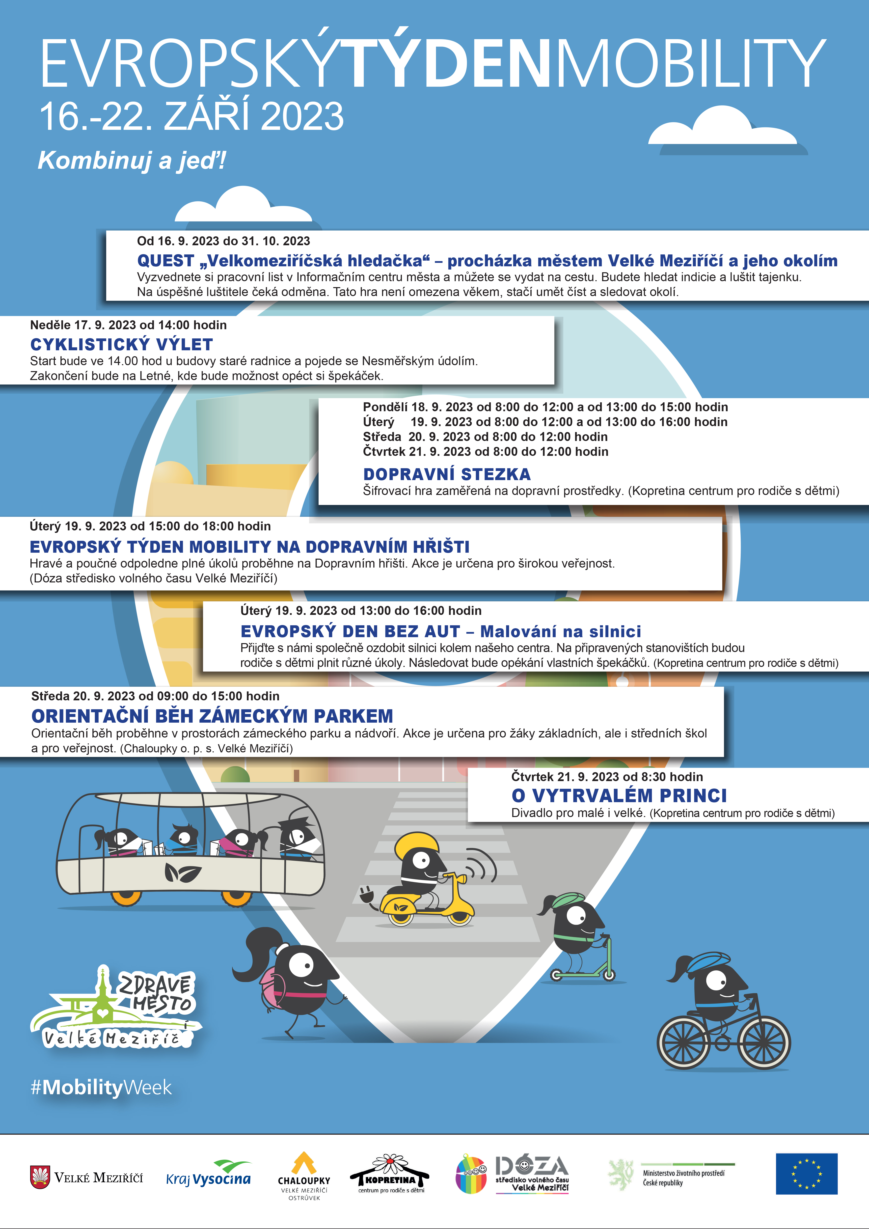 Zdravé město Velké Meziříčí pořádá tradiční zářijovou akci v rámci Evropského týdne mobility. Spolupracuje na ní s místními Chaloupkami na Ostrůvku, Dózou – střediskem volného času a Kopretinou – centrem pro rodiče s dětmi.