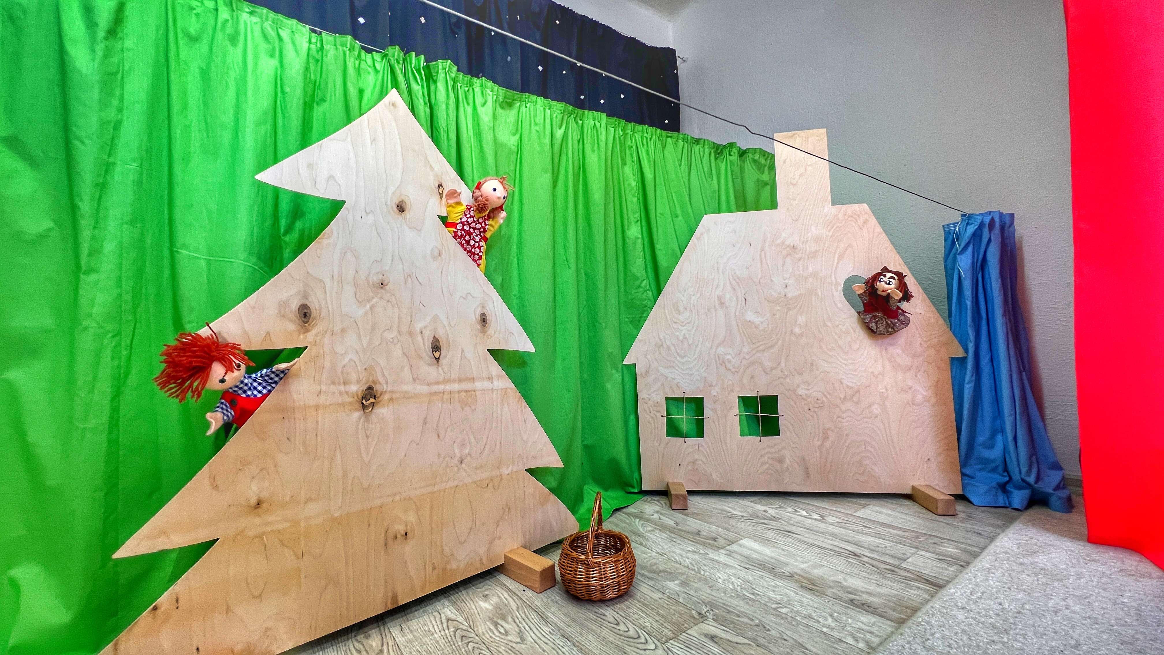 A ještě jedno místo je obvykle zrakům přicházejících skryto. Druhý snímek vám nechává nahlédnout do suterénního divadla, kam může vstoupit pouze dětský divák se svou školní třídou. Protože jde o scénu miniaturní, můžeme s klidným svědomím napsat, že při představení jsme skutečně... V KONTAKTU.