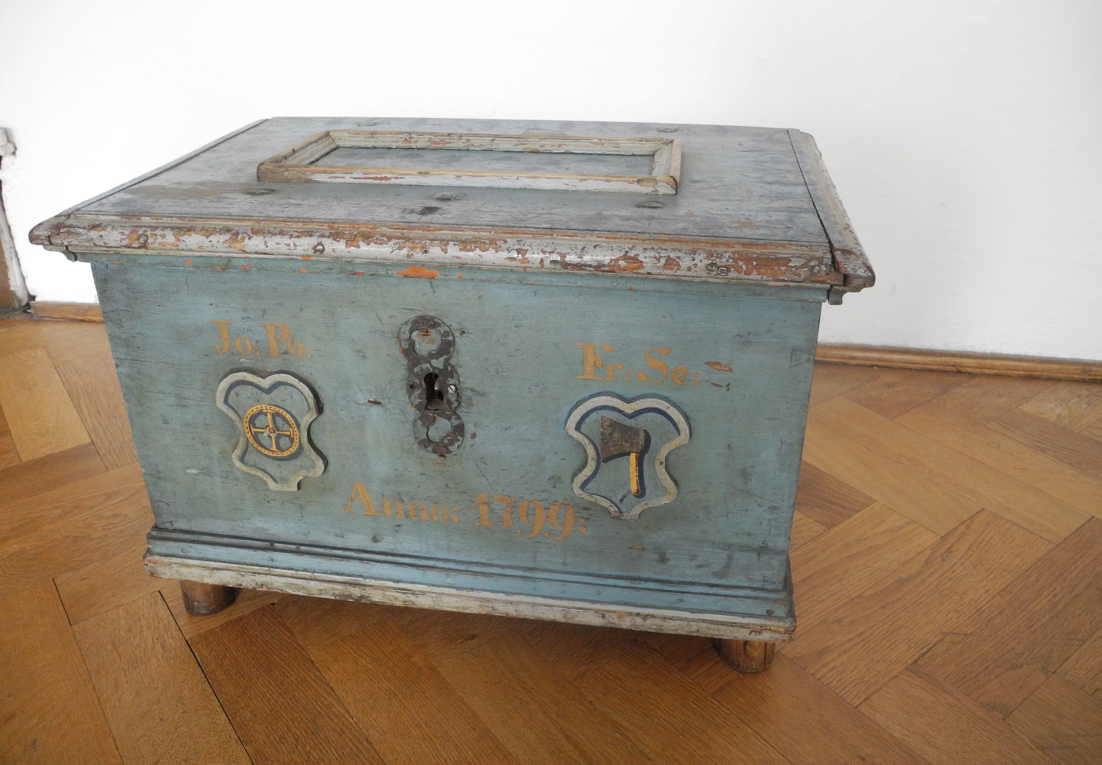 Nejdůležitějším předmětem cechu byla vždy cechovní pokladnice, které se říkalo matka cechu. Do ní byly vkládány nejen peníze, ale také artikule, výuční listy, pečetidla a někdy i ferule. Jejím otevřením bývalo zahajováno cechovní zasedání. V našem depozitáři a v expozicích nalezneme truhlice mlynářského, krejčovského, zednického, truhlářského a kolářského či punčochářského cechu. Často jsou na truhlicích vyvedeny atributy spjaté s oním konkrétním cechem, takže v případě mlynářů se jedná o kolo, kružidlo a sekyru, pokladnice zednického cechu je ozdobena motivem trojúhelníku a zednického kladiva se lžící. Ve většině případů jsou pokladnice opatřeny také letopočtem. Například truhlice krejčích, která se do muzea dostala darem v roce 1927, nese letopočet 1780.