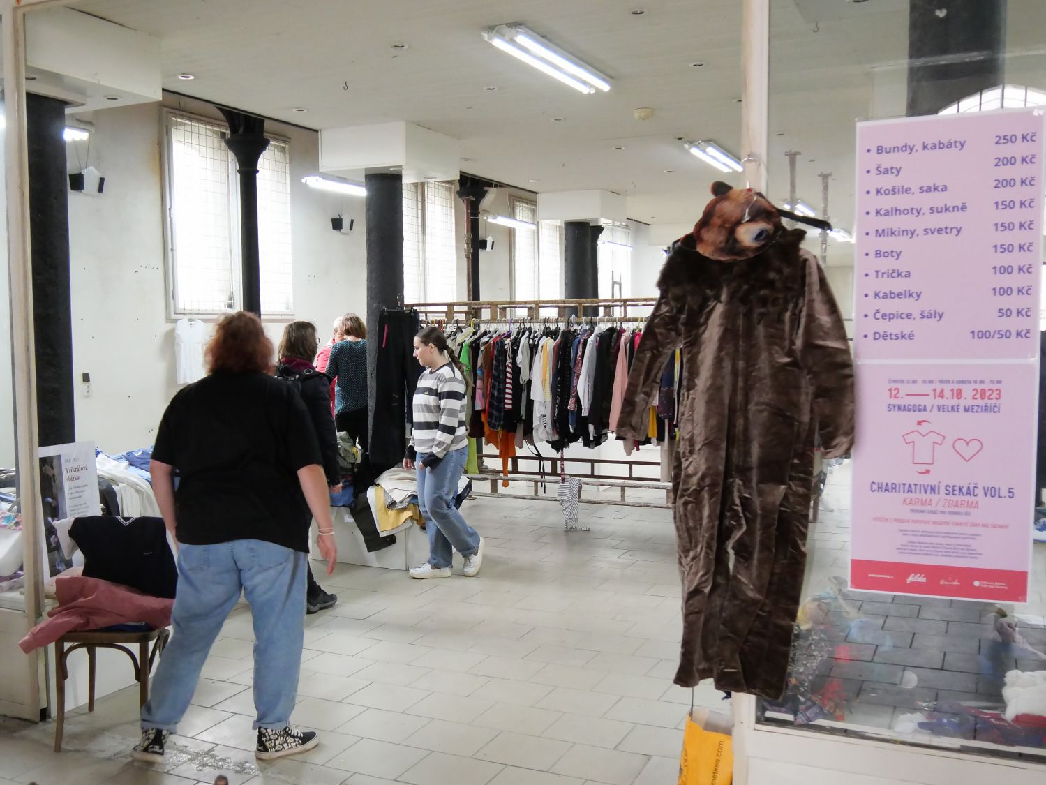 Šaty, košile, kalhoty, svetry, boty a mnohé další doplňky se vrátily do synagogy, ale jen do soboty 14. října. Právě v ní totiž probíhá charitativní sekáč. Otevřeno je ve čtvrtek do 19 hodin, v pátek a sobotu od 10 do 19 hodin.