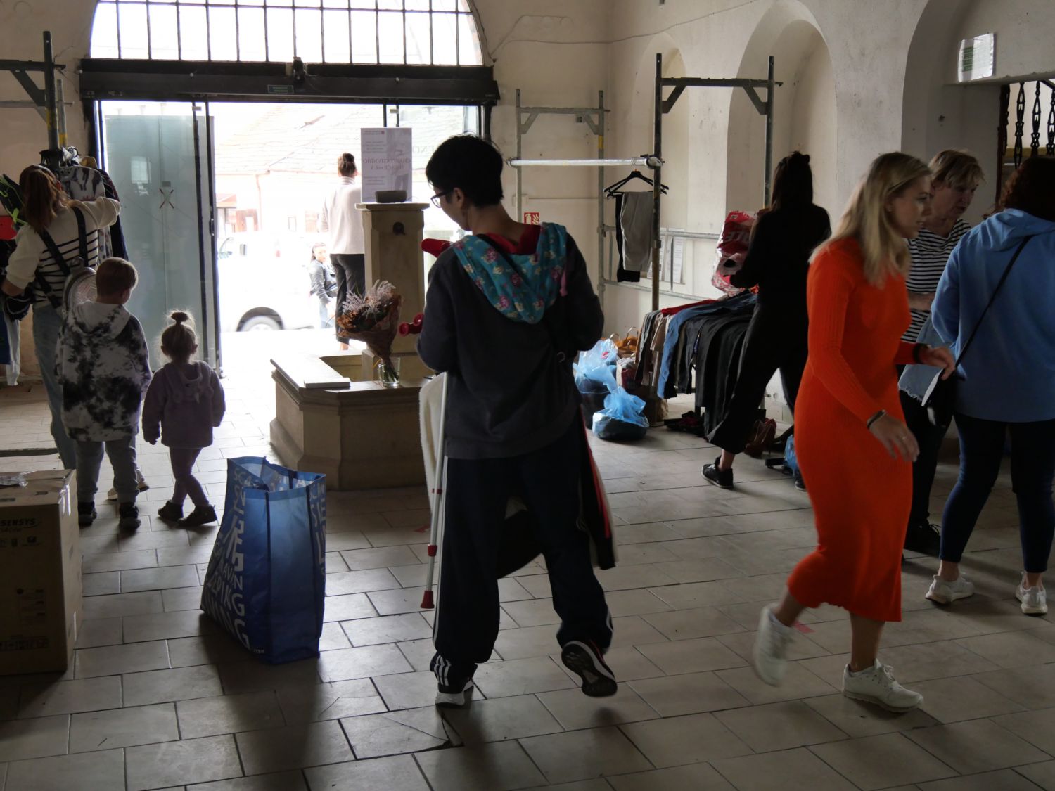 Lidé stále mohou nosit oblečení, které vytřídili ze svého šatníku. „Už jich tu byly desítky, máme zarovnané schodiště. Letos se nám přihlásilo i nejvíc zájemců o samostatný prodej, jehož podmínkou je, dát na charitu padesát korun z každého prodaného kusu,“ sdělila Alžběta Bezděková, hlavní organizátorka již pátého ročníku charitativního sekáče.