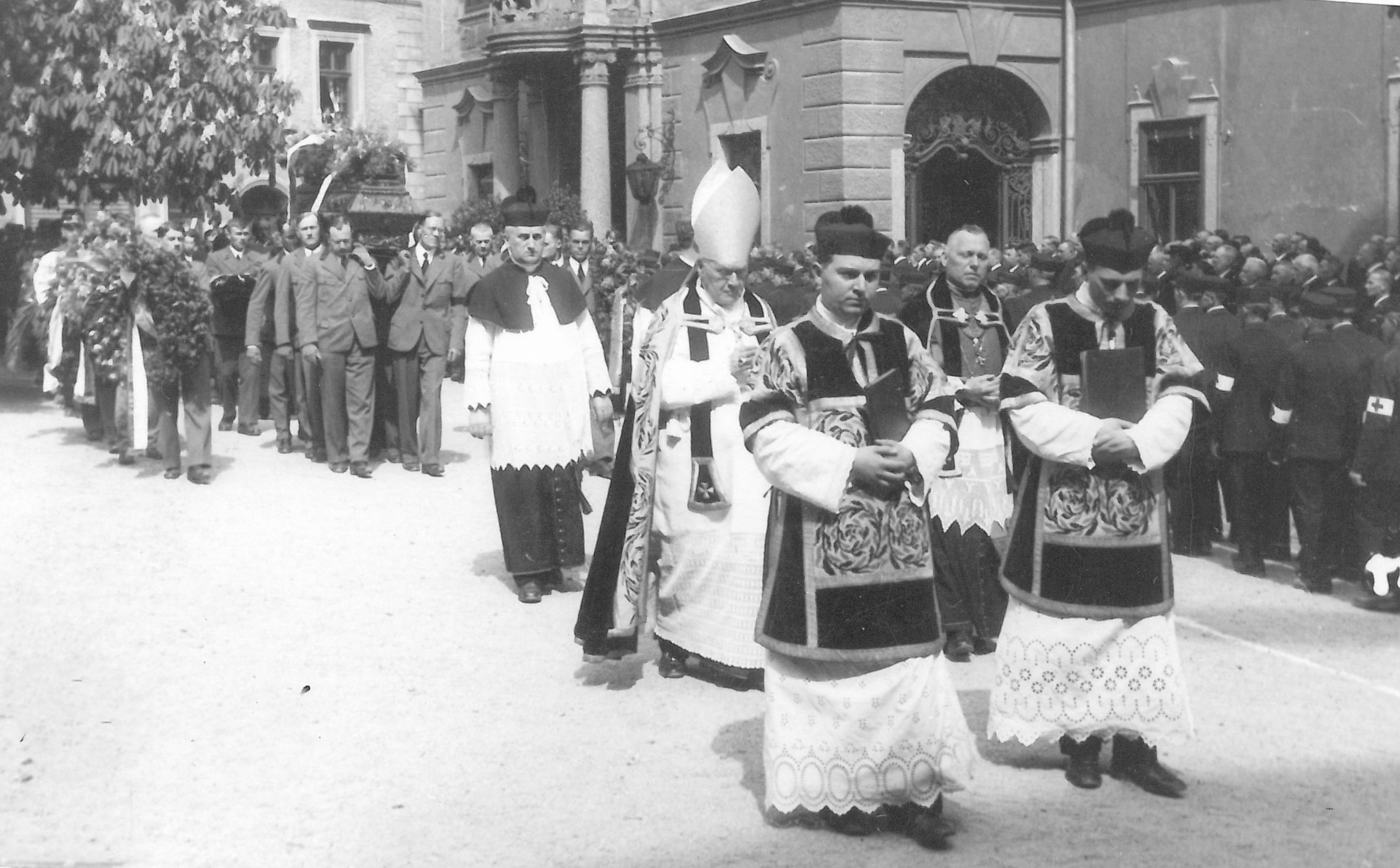 Celý soubor stuh je dochován z pohřbu starosty P. Františka Procházky, který se konal v roce 1940. Na stuhách se objevily například následující texty: „Milému panu starostovi vděční zaměstnanci města", „Duchovnímu rádci katolické ženy a dívky", „Svému starostovi občanstvo" či „Svému milému členu Moravská banka". Pohřeb starosty máme zachycen také na dobových fotografiích.
