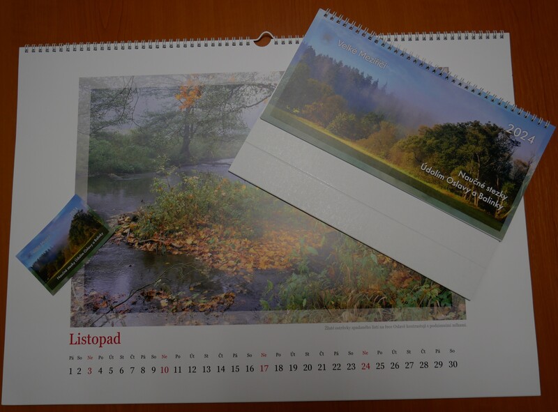 Brzy už také budou k dispozici kalendáře, stolní a nástěnný, pro rok 2024. V příštím roce se tak můžete těšit na podmanivou krásu naučných stezek údolím Oslavy a Balinky. A to vše na fotografiích fotografa Antonína Havláta. K zakoupení budou opět v informačním centru či na eshopu města.