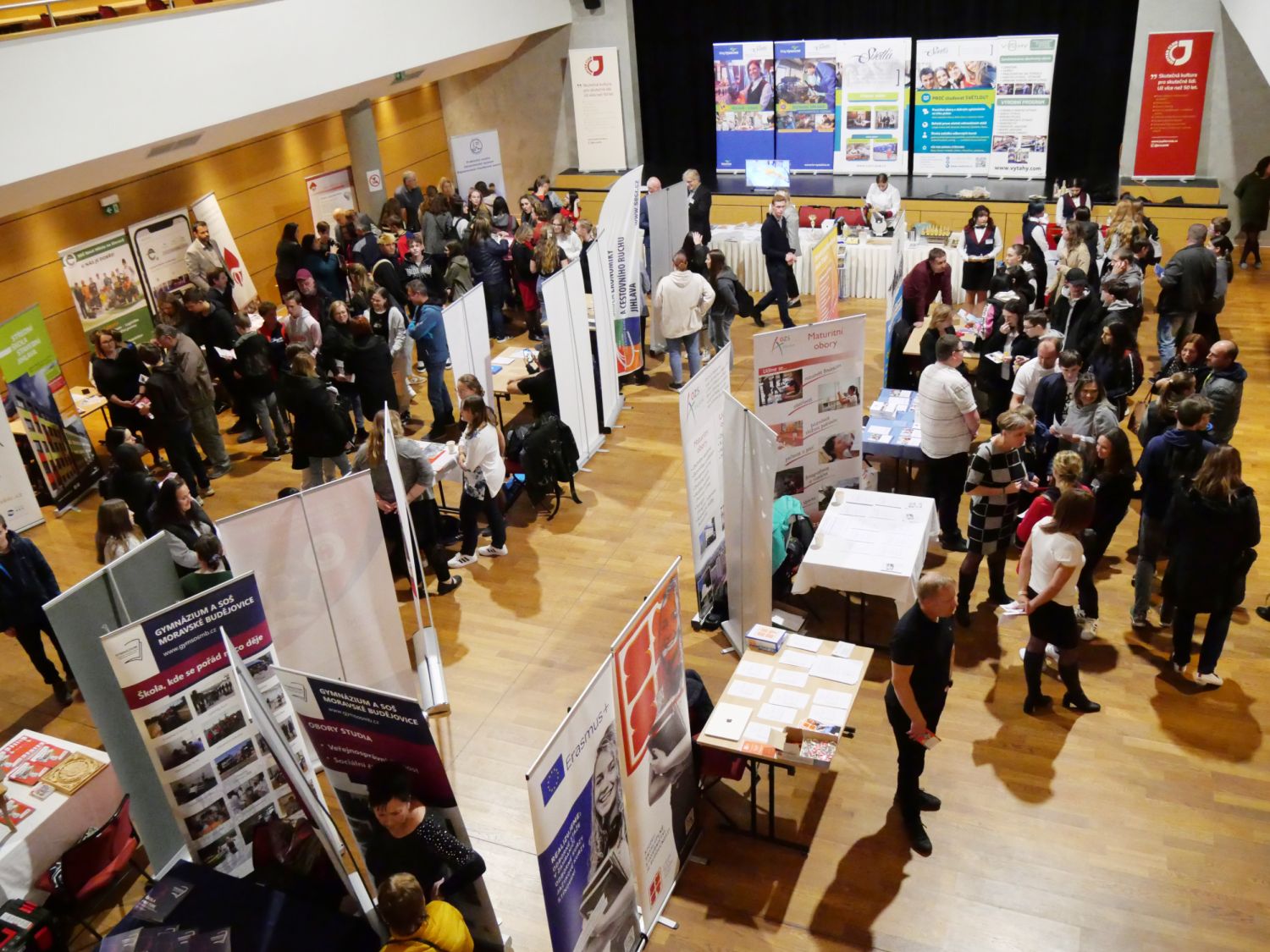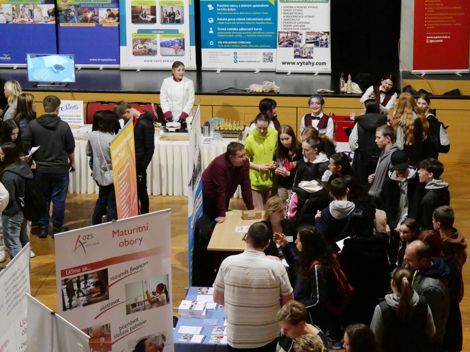 Účast na včerejším Festivalu vzdělávání v Jupiter clubu byla opravdu hojná. Nabídku studia na středních i vysokých školách přijelo odprezentovat celkem 25 škol. Žáci si tak mohli vybírat ze spousty různých oborů od zemědělství, přes gastronomii, právo a pedagogiku, uměleckořemeslné zpracování dřeva, až po studium na gymnáziu. Místní hotelová škola nabídla i malé občerstvení.