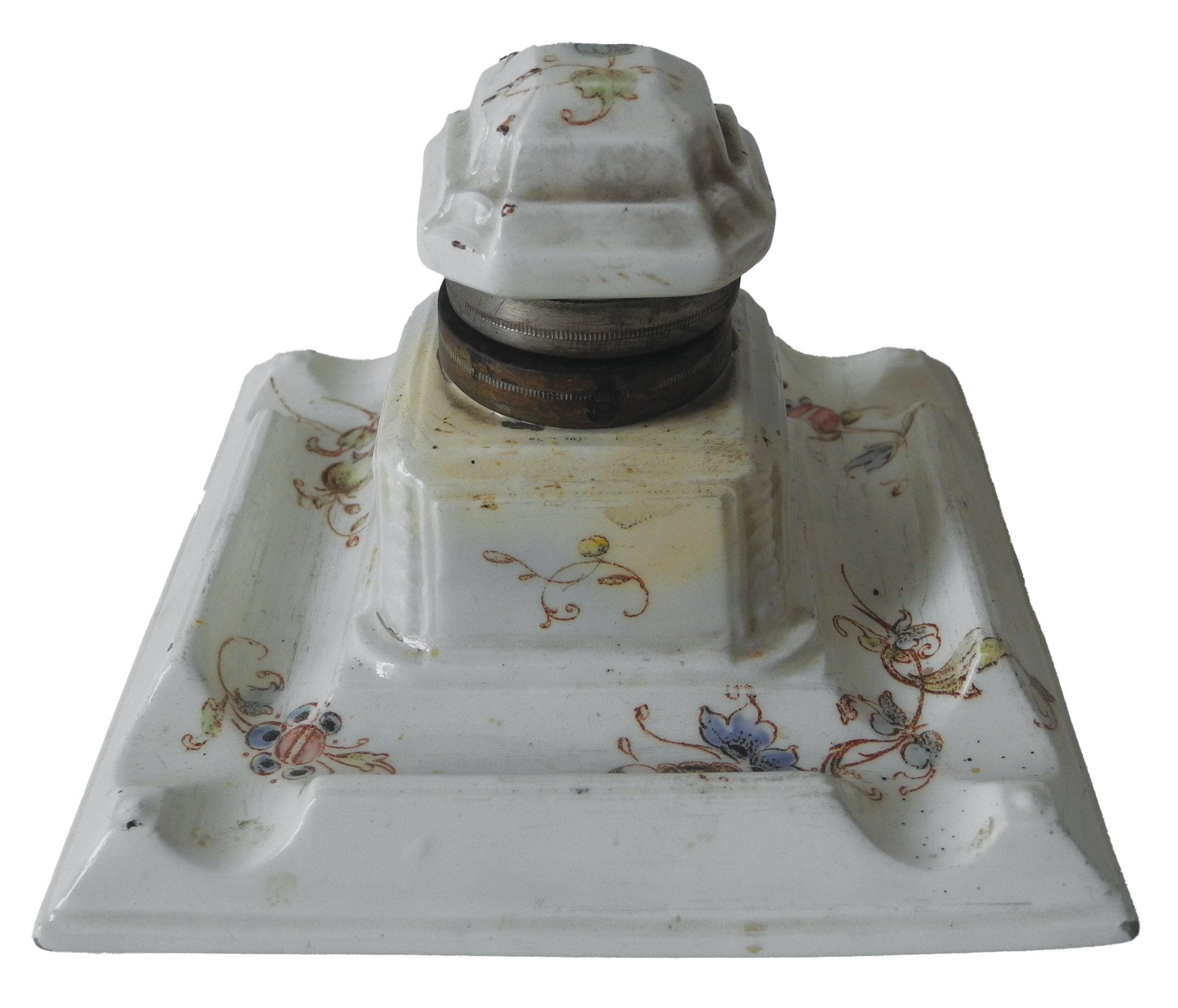 K pohlednicím a přáním patří psací potřeby. V depozitáři našeho muzea nalezneme hned několik kalamářů, které sloužily pro uchování inkoustu. Aby nedošlo k vylití, odpařování či znečištění inkoustu, byly nádobky opatřeny víčky. K jedné nádobce následně přibyla i nádobka druhá na jemný písek či jiný sypký materiál, který sloužil k posypání mokrého textu, aby nedošlo k jeho rozmazání.