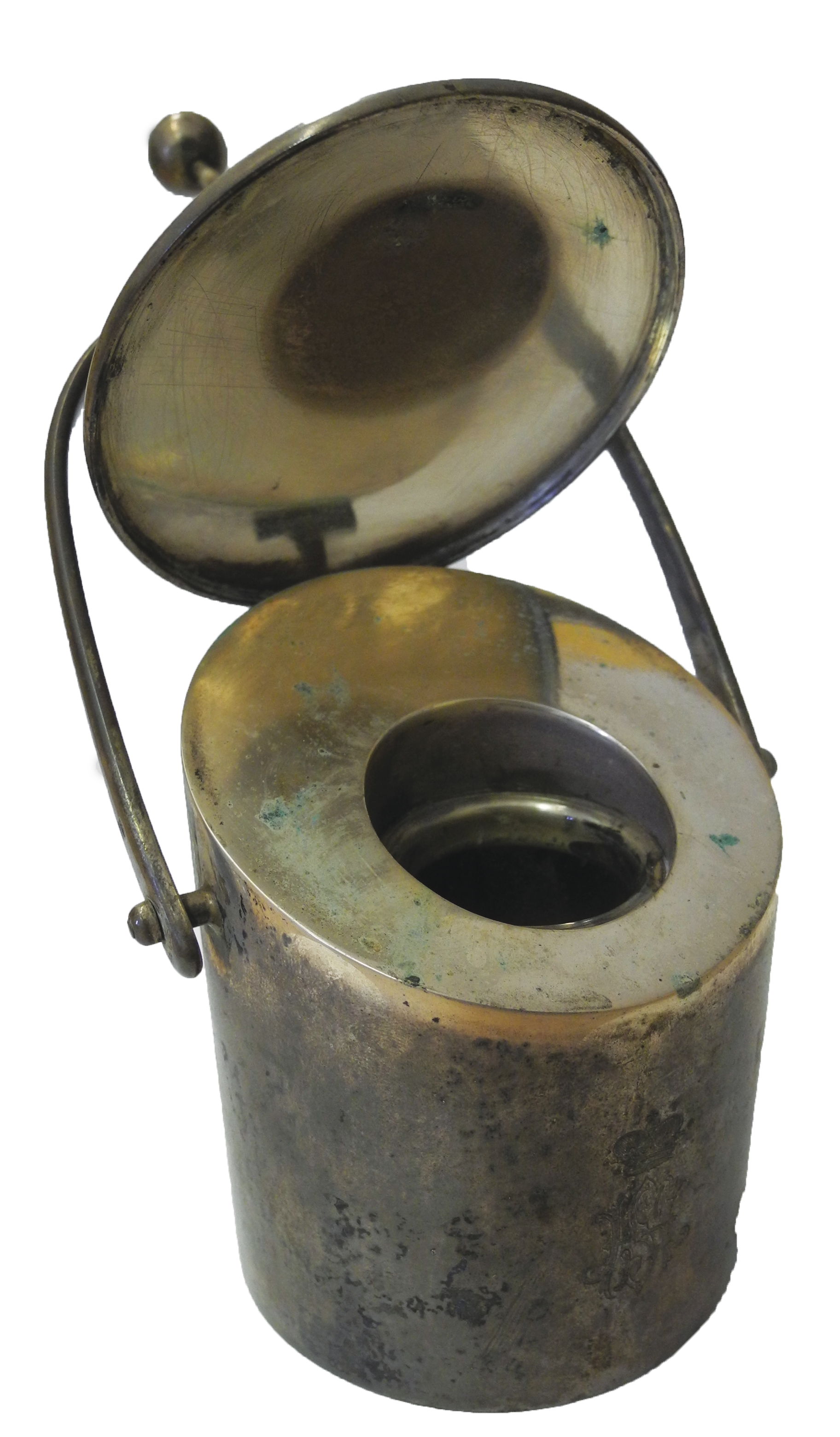 V policích a krabicích nalezneme celou řadu kalamářů skleněných, kovových či porcelánových. Ve sbírkách ale máme i kalamář stříbrný. Jedná se skleněnou nádobku na inkoust, která je uložena ve stříbrné schránce. Toto pouzdro je opatřeno puncem v podobě hlavy Diany v pětilisté růži, který se v Rakousku-Uhersku užíval od roku 1866.