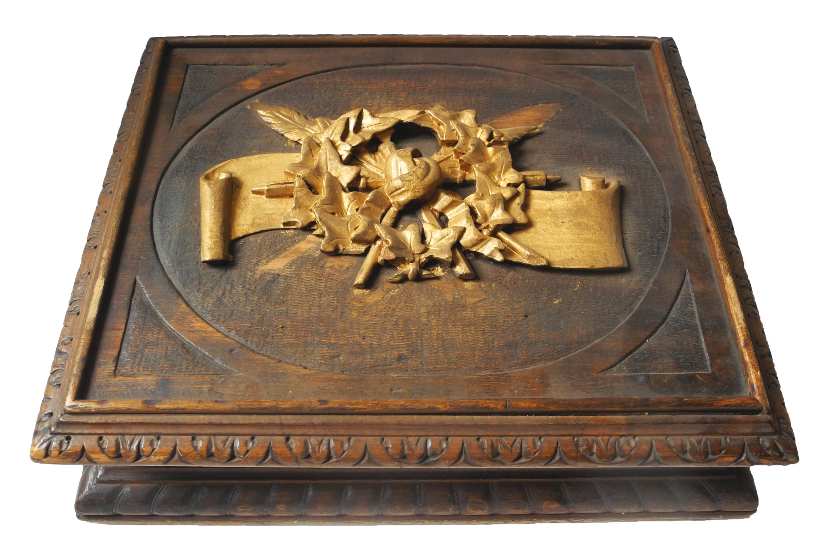 Kazeta z lipového dřeva z přelomu 19. a 20. století, která sloužila na uložení kalamáře a dalších psacích potřeb, je přímo spojena s regionální historií. V případě této kazety se totiž jedná o práci Antonína Jaroše narozeného v roce 1849, který byl bratrancem učitele, školního inspektora a sběratele lidových písní Antonína Vorla. Krabička je rozdělena na menší oddíly, kde jsou umístěny prohlubně pro lahvičky kalamáře. Víko je ozdobeno přilepeným dekorem na způsob reliéfu, který znázorňuje zkřížená pera překrytá břečťanovým věncem. Kazetu muzeu daroval v roce 1943 velkomeziříčský hostinský Josef Drdla.