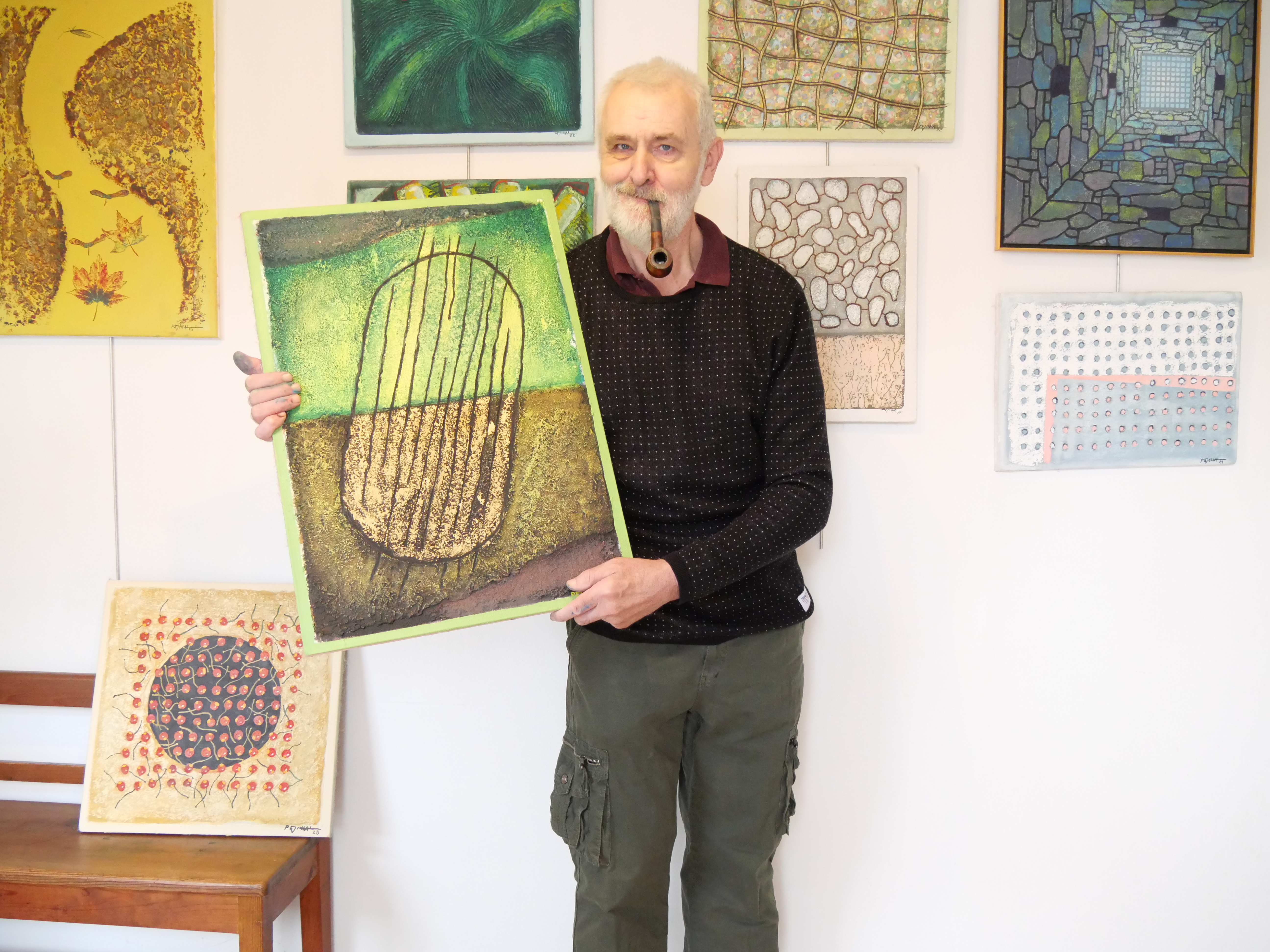 Student zdejšího gymnázia, technický pragmatik spojený se Stavební fakultou VUT Brno a velký objevovatel překvapivých souvztažností přirozené volnosti a geometrické krásy pythagorejců. Je to malíř nejen vibrující v dvojrozměrné ploše, cítí potřebu doteku v plasticitě a vrstveném reliéfu. Brázdí obrazem, cudně a s něžným ostychem modeluje horizonty nádechu a výdechu. Jeho rukopis glosuje městská zákoutí, přírodní scenérie oživlé pozoruhodným zpracováním detailu. Zrovna tak komentuje svět kolem sebe osobitým humorem, lehkým pošťuchováním a nezlomnou životní silou pomáhající zdolat vše, co by mu mohlo bránit v jeho touze malovat. S větrem ve vlasech, neuvěřitelnou houževnatostí, s nadhledem své výšky a velikostí svého srdce vpisuje do svých obrazů poselství odhodlání pro nás všechny. Na svém výtvarném kontě má na 70 autorských výstav a 140 kolektivních výstav.