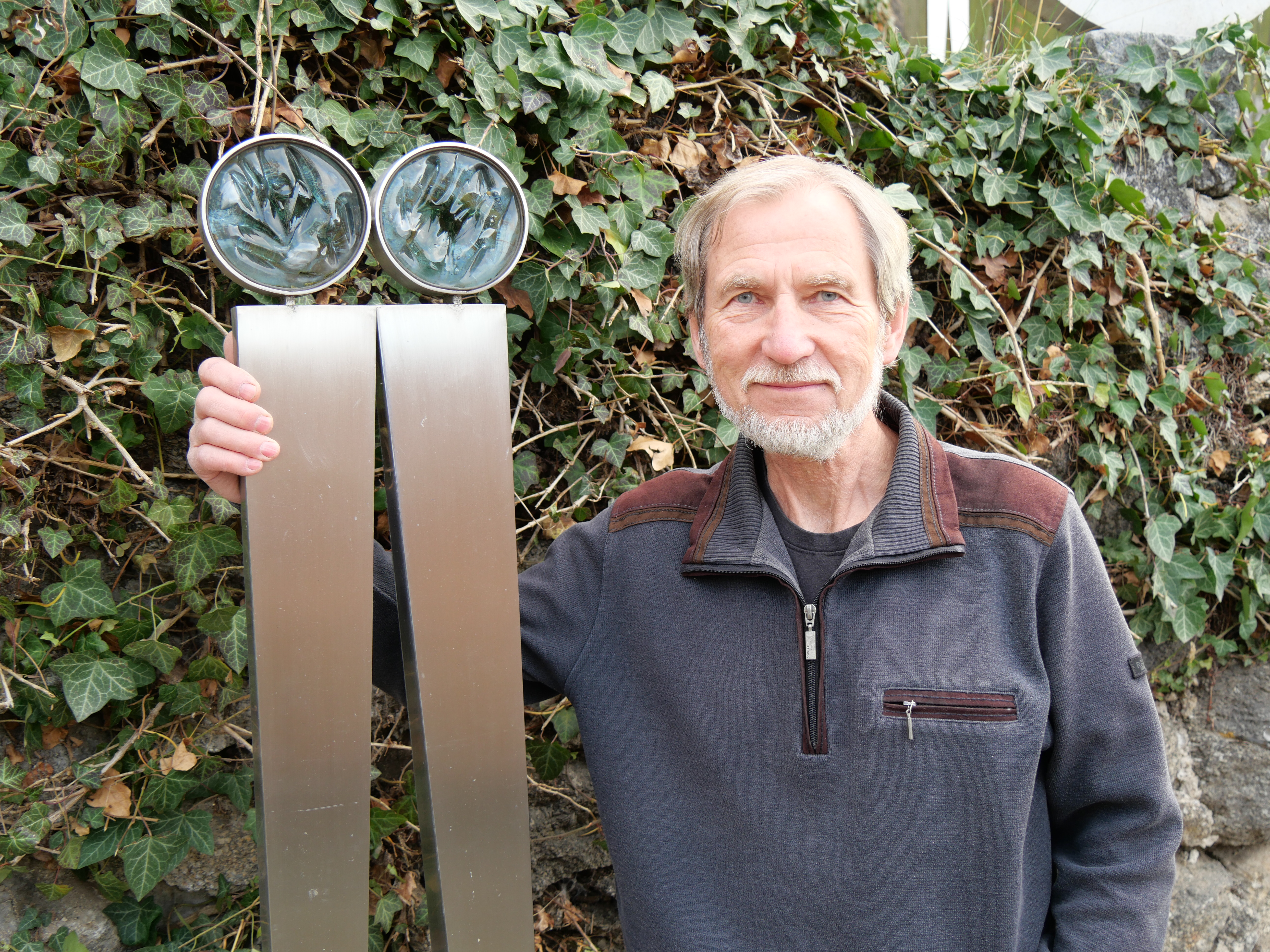 Nezlomný lidumil, snílek a poctivec, precizní pracant, vnímavý učitel, zodpovědný fantasta, skromný člověk. Zde narozený a žijící, vyučený řemeslu, nalézající krásu pravdy okamžiku v každém letmém doteku s tímto světem. Stále hledající tvar, čistotu, jednoduchou, přesto podmanivou symbiózu nerezového kovu s kameny. Stále hledající opravdovost a ryzost – v umění i v životě. Na svém kontě má na 60 samostatných výstav, na 100 kolektivních, na 20 realizací, 12 knižních ilustrací a jeho práce jsou zastoupeny v 8 sbírkách. Celých 13 roků vyučoval na Střední škole řemesel v Třebíči. A Meziříčím dennodenně neúnavně brázdí se svým kolem a úsměvem. Setkání s ním je radost z jeho radování se ze všeho životaschopného vůkol. Laskavost a moudrost, elegance a skromnost jsou devizou jeho výjimečné osobnosti.