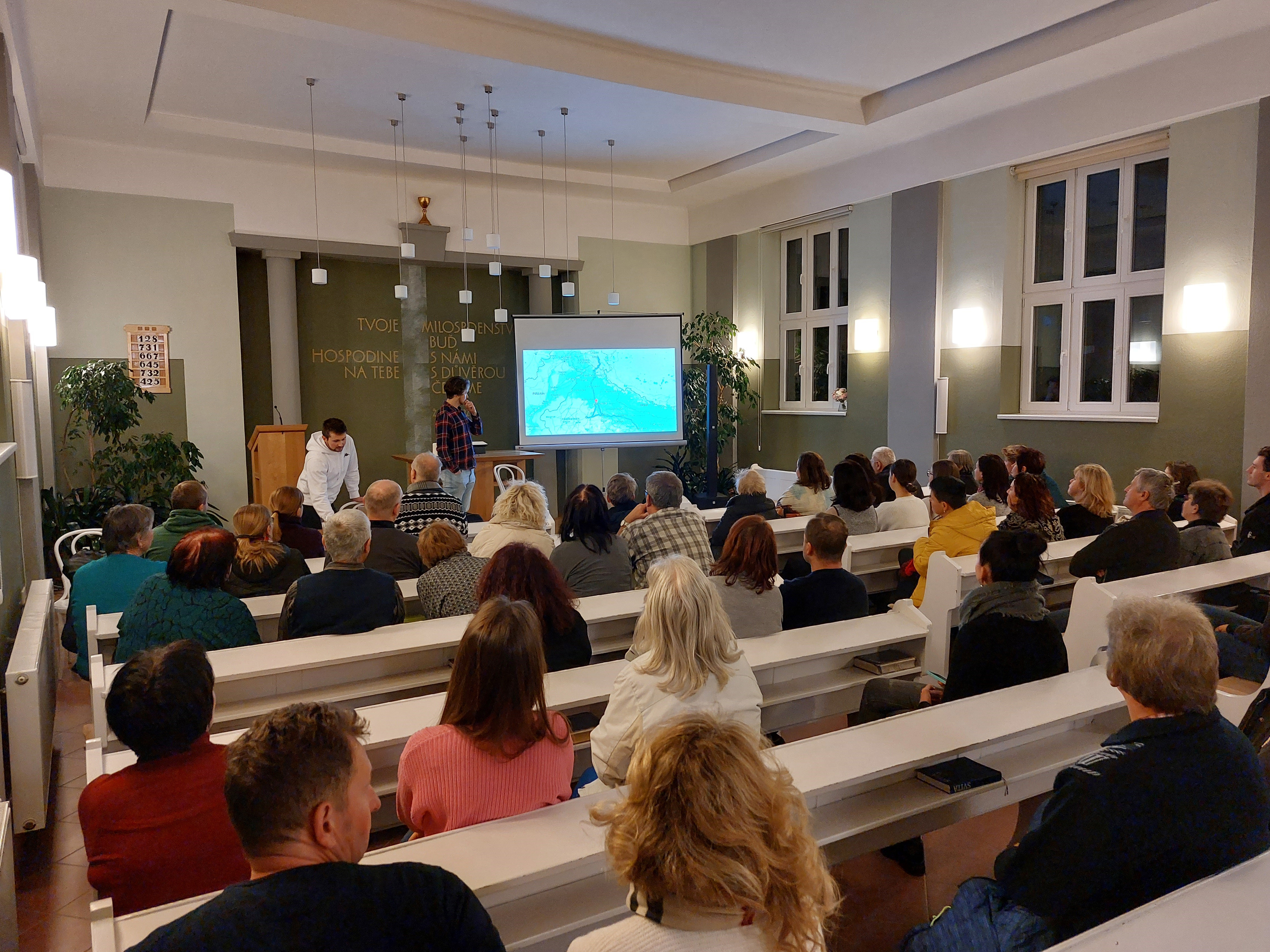 Martinovi a Janovi poděkoval potleskem za přednášku nabitou informacemi i fotografiemi zaplněný sál Husova domu.