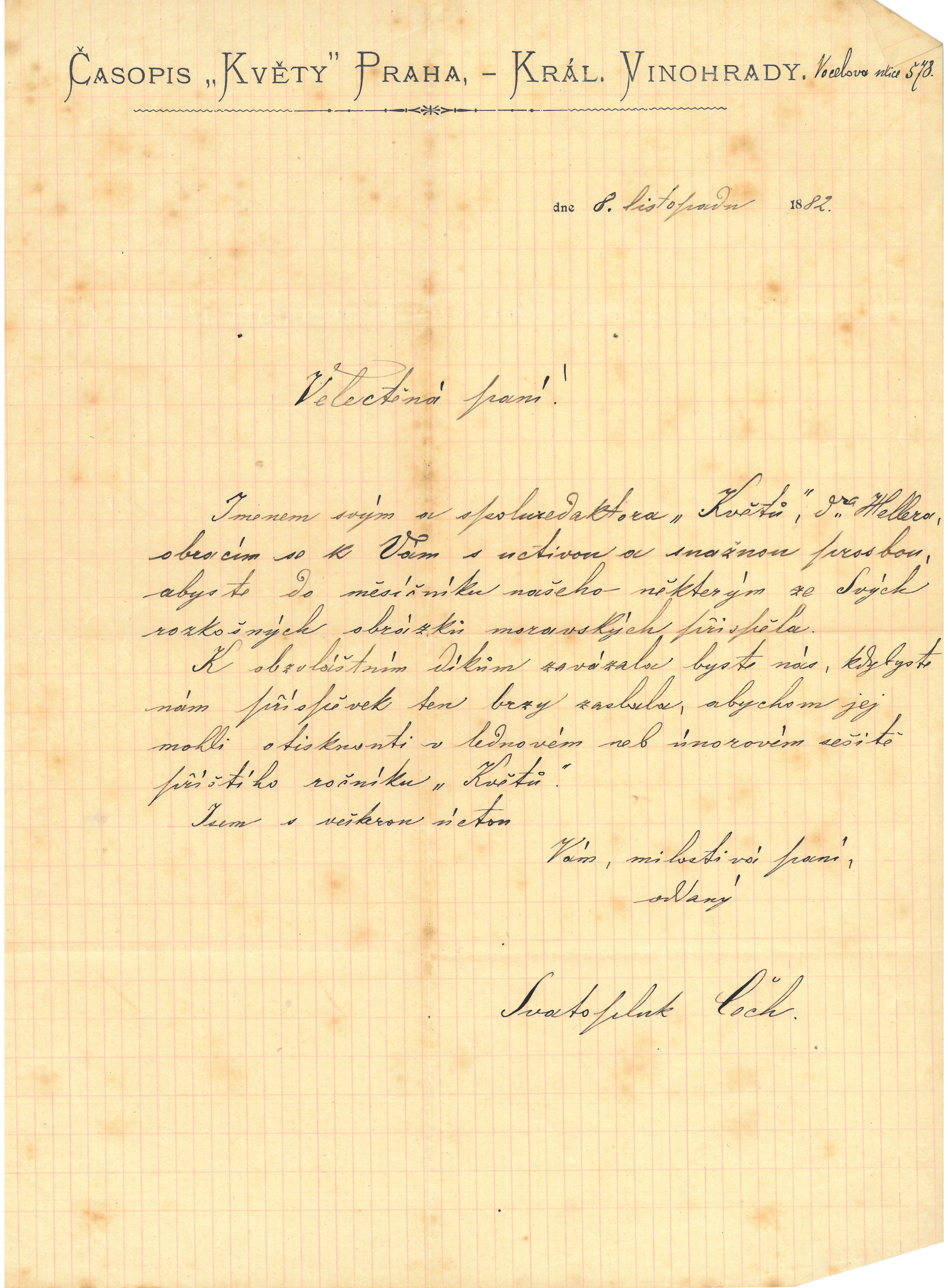 V archivu můžeme dále zalistovat příspěvky, které vycházely v novinách a časopisech, jako byl třeba Časopis Matice Moravské, Národ a škola, Orel, Světozor, Literární listy, Vesna, Obzor či Květy.