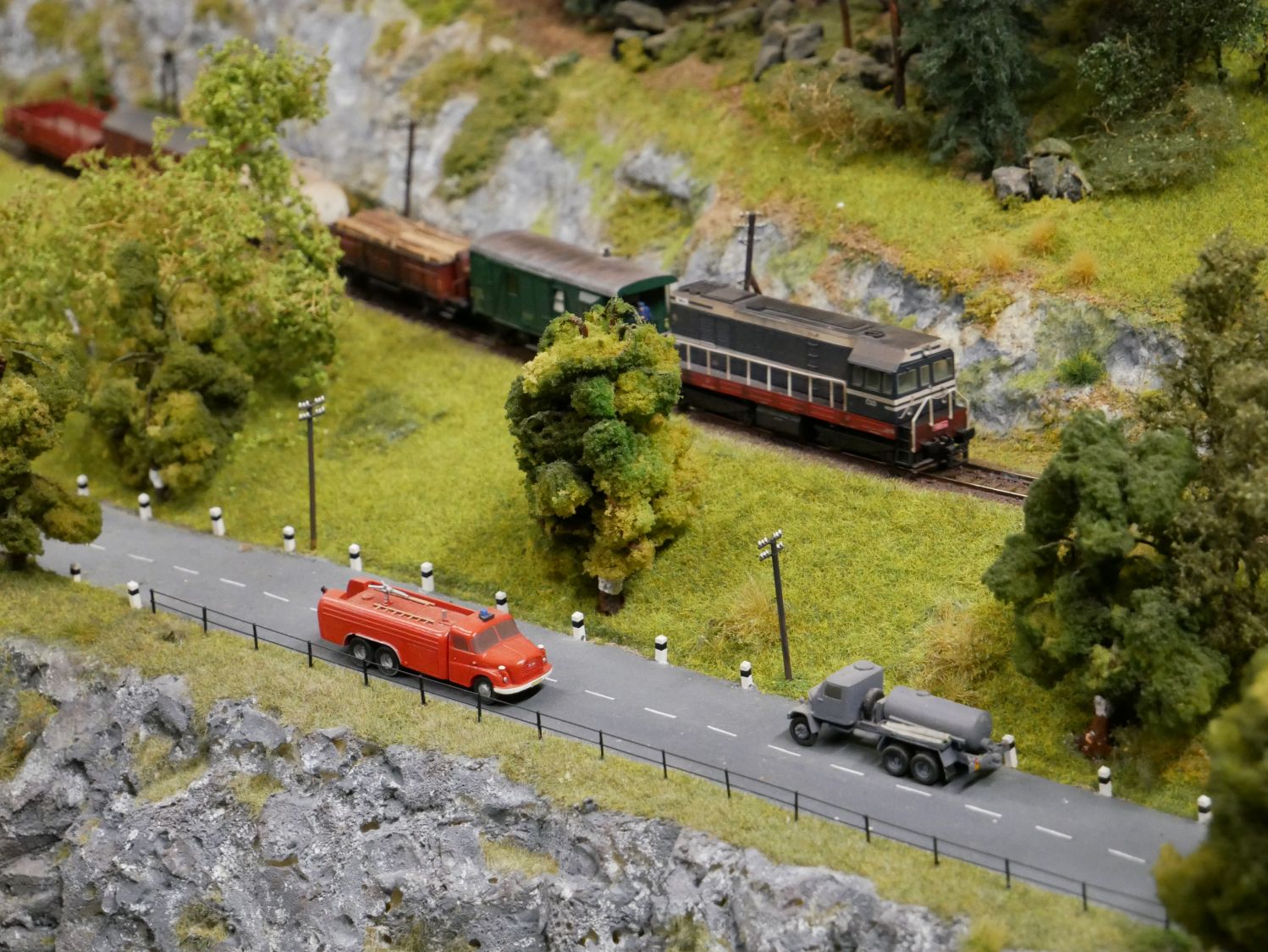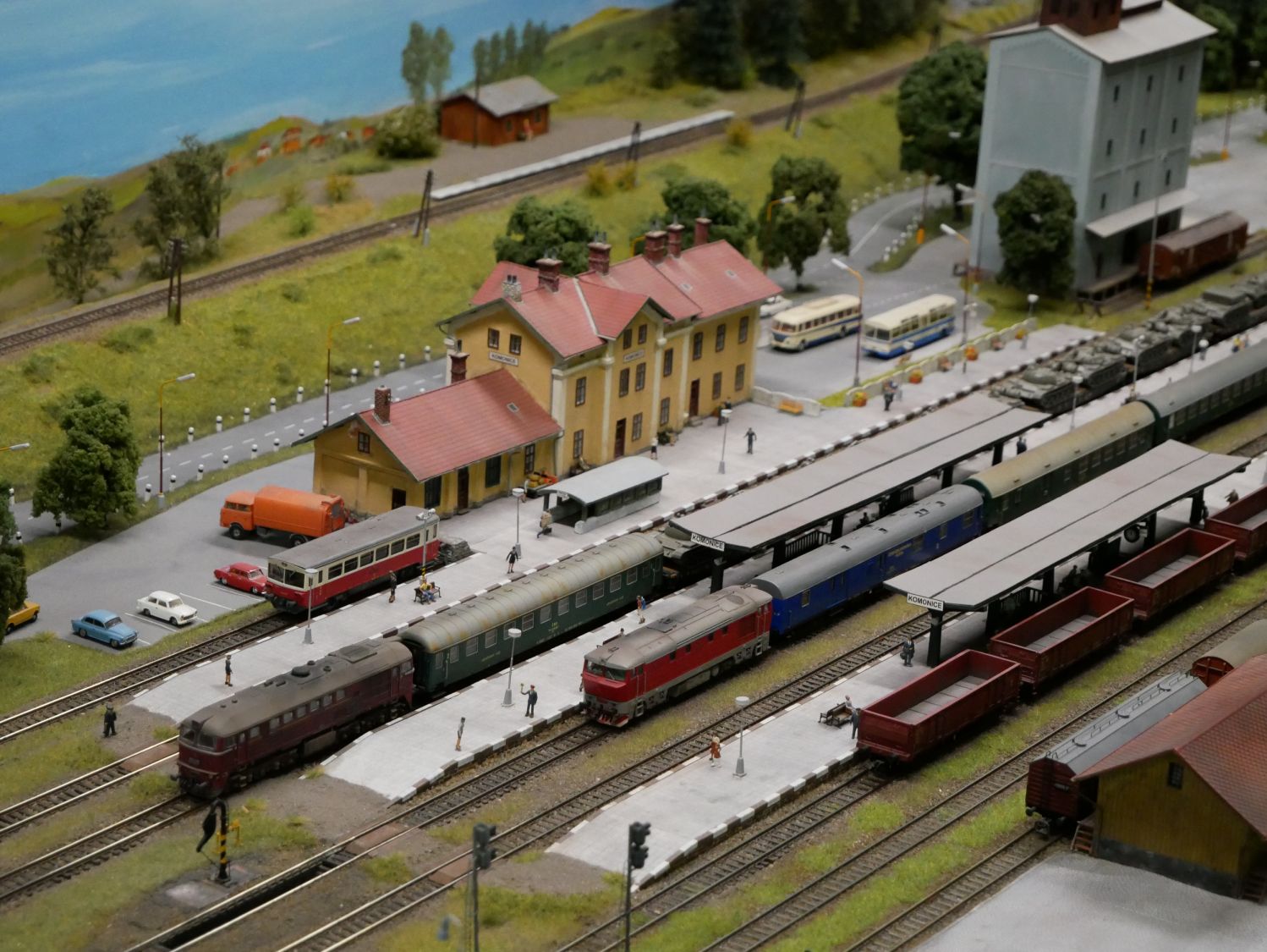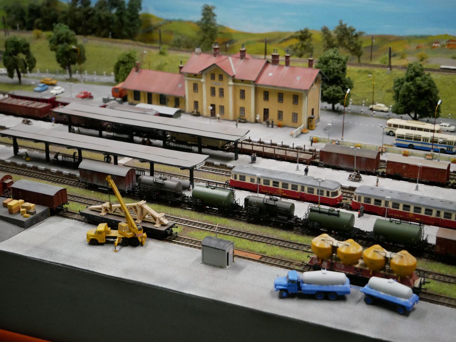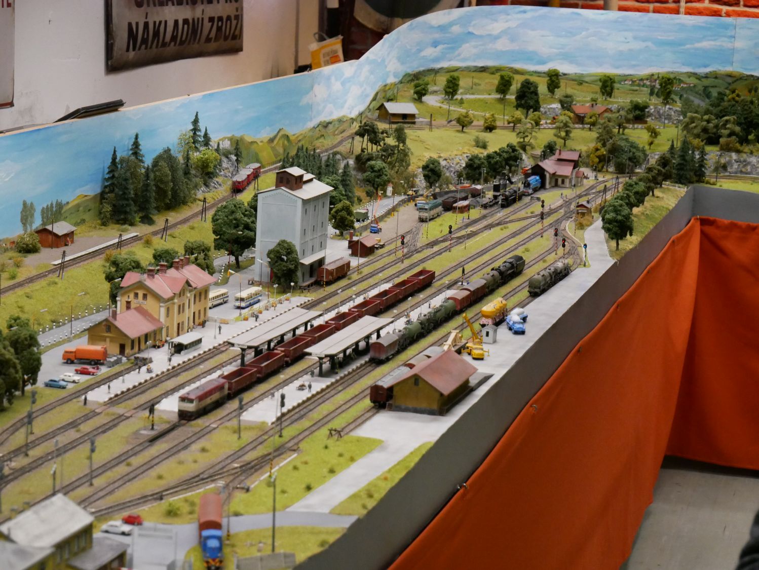 Už cesta do výstavních prostor je lemována nejrůznějšími proprietami bytostně spojených se železnicí. V samotných výstavních prostorách se po kolejích prohání nejrůznější typy lokomotiv a vagonů. Mistrně a do detailů je vyvedena i krajina modelového kolejiště. Takže tu najdete třeba hlídku VB v akci, chlapa na komíně, hasičskou tatru na výjezdu či práškovacího čmeláka. Na silnicích pak wartburgy, trabanty, embéčka, žigulíky, vé3esky, es5, velorexy, zetory, avie, gazy, trambusy či známé autobusy ešemky.