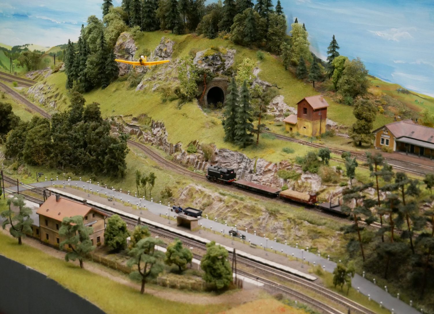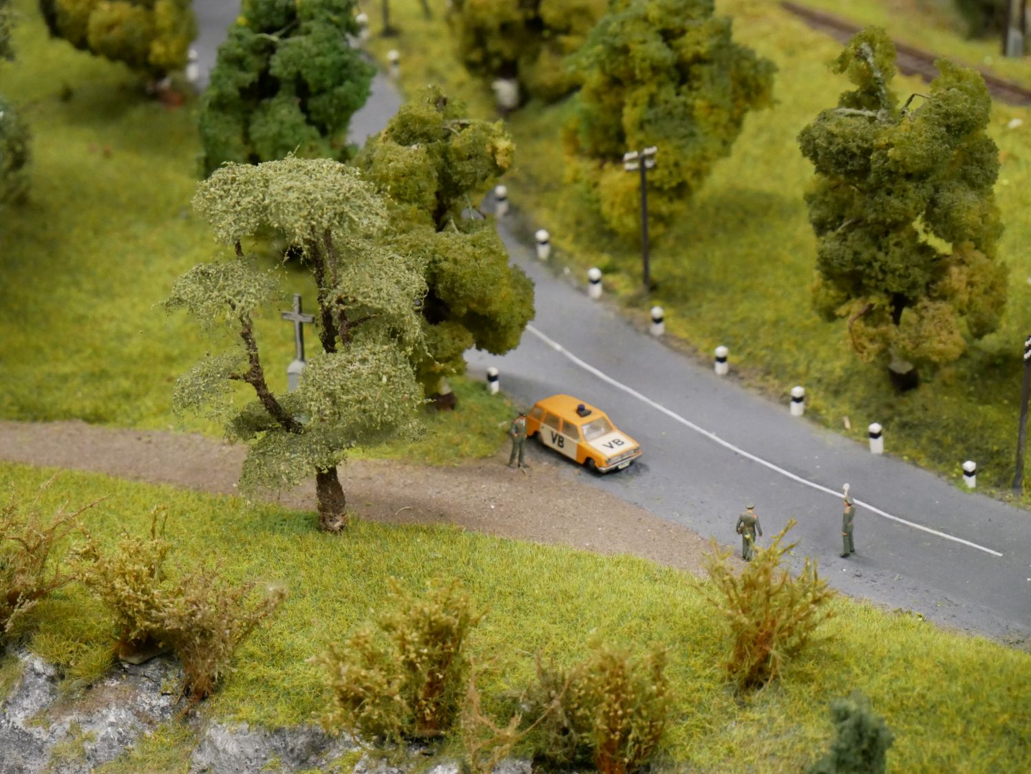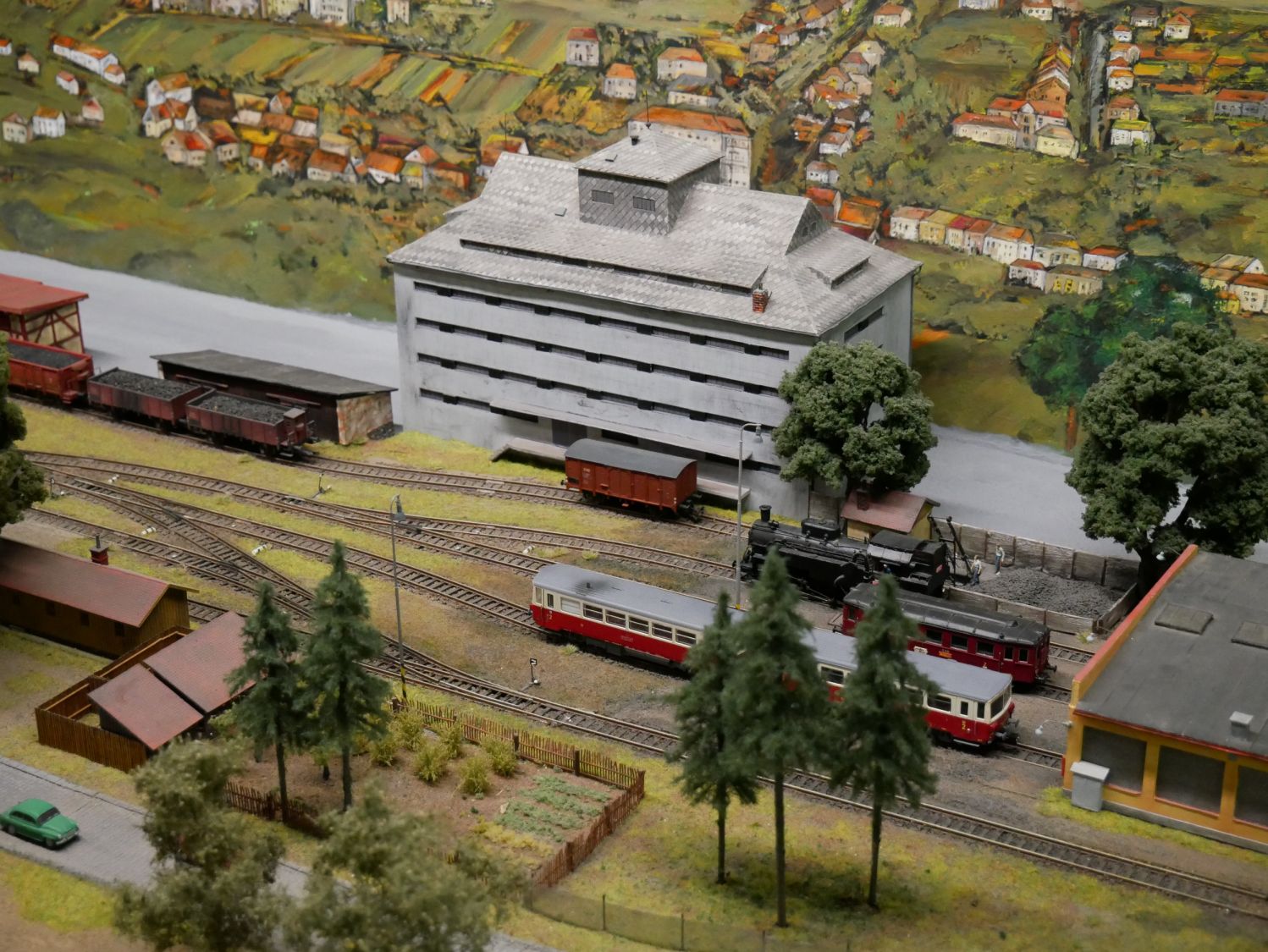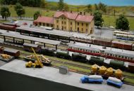 Už cesta do výstavních prostor je lemována nejrůznějšími proprietami bytostně spojených se železnicí. V samotných výstavních prostorách se po kolejích prohání nejrůznější typy lokomotiv a vagonů. Mistrně a do detailů je vyvedena i krajina modelového kolejiště. Takže tu najdete třeba hlídku VB v akci, chlapa na komíně, hasičskou tatru na výjezdu či práškovacího čmeláka. Na silnicích pak wartburgy, trabanty, embéčka, žigulíky, vé3esky, es5, velorexy, zetory, avie, gazy, trambusy či známé autobusy ešemky.