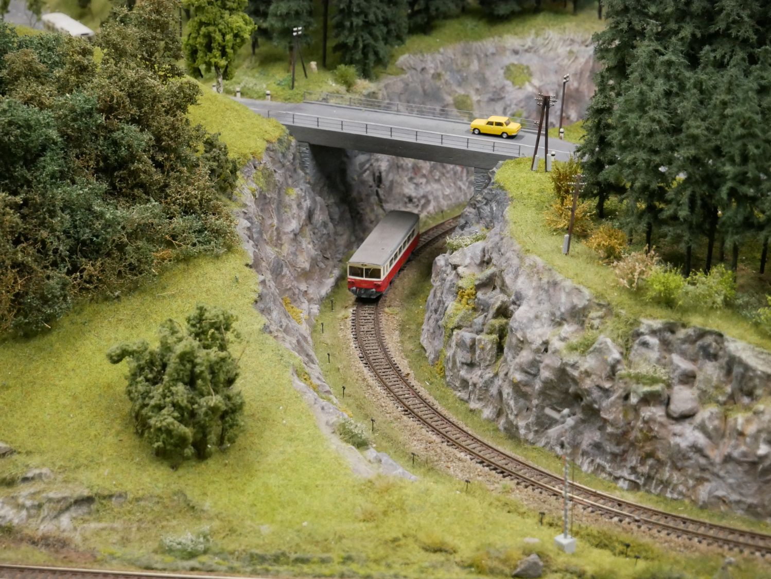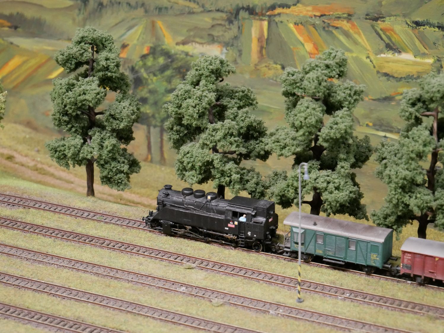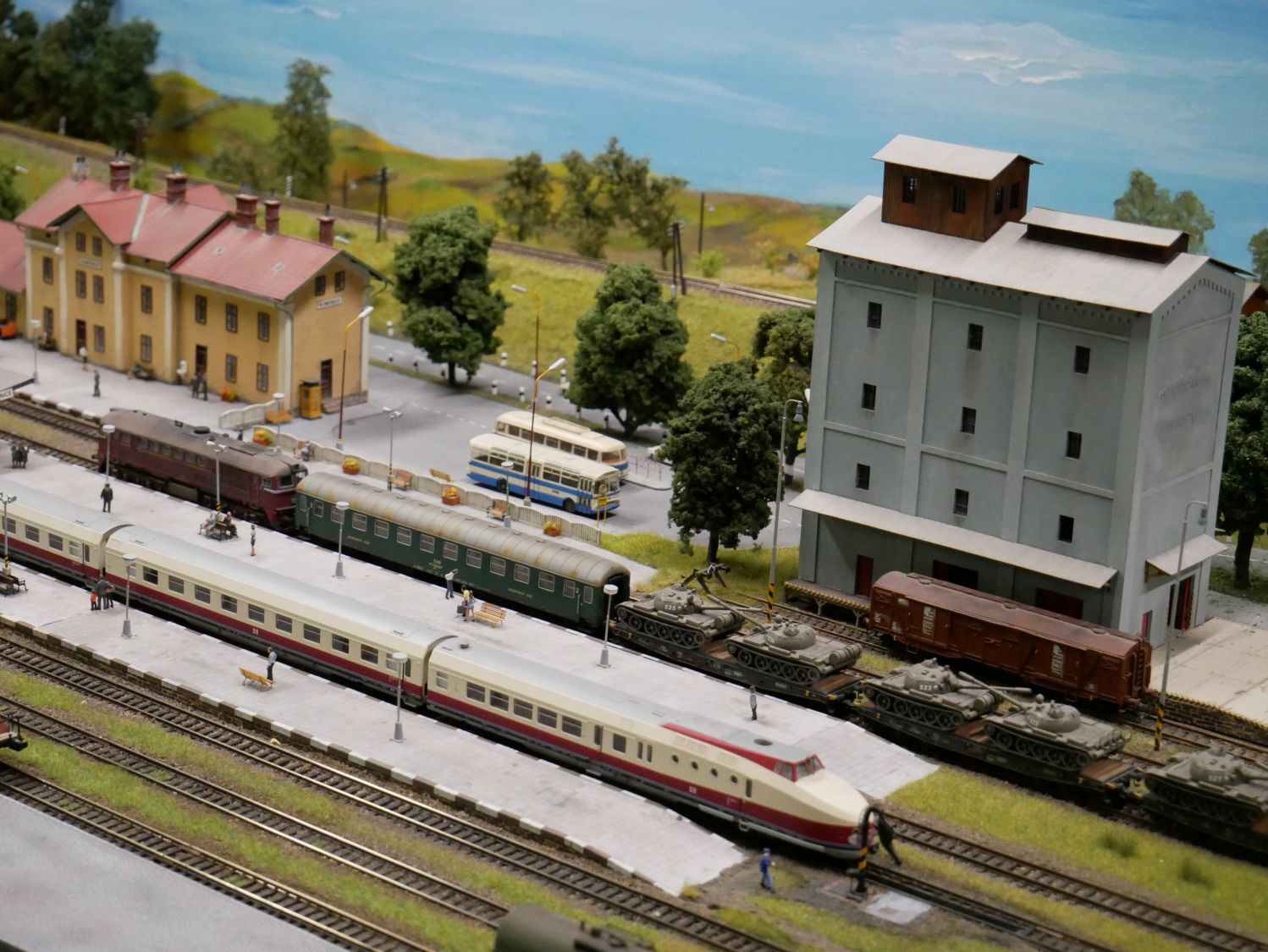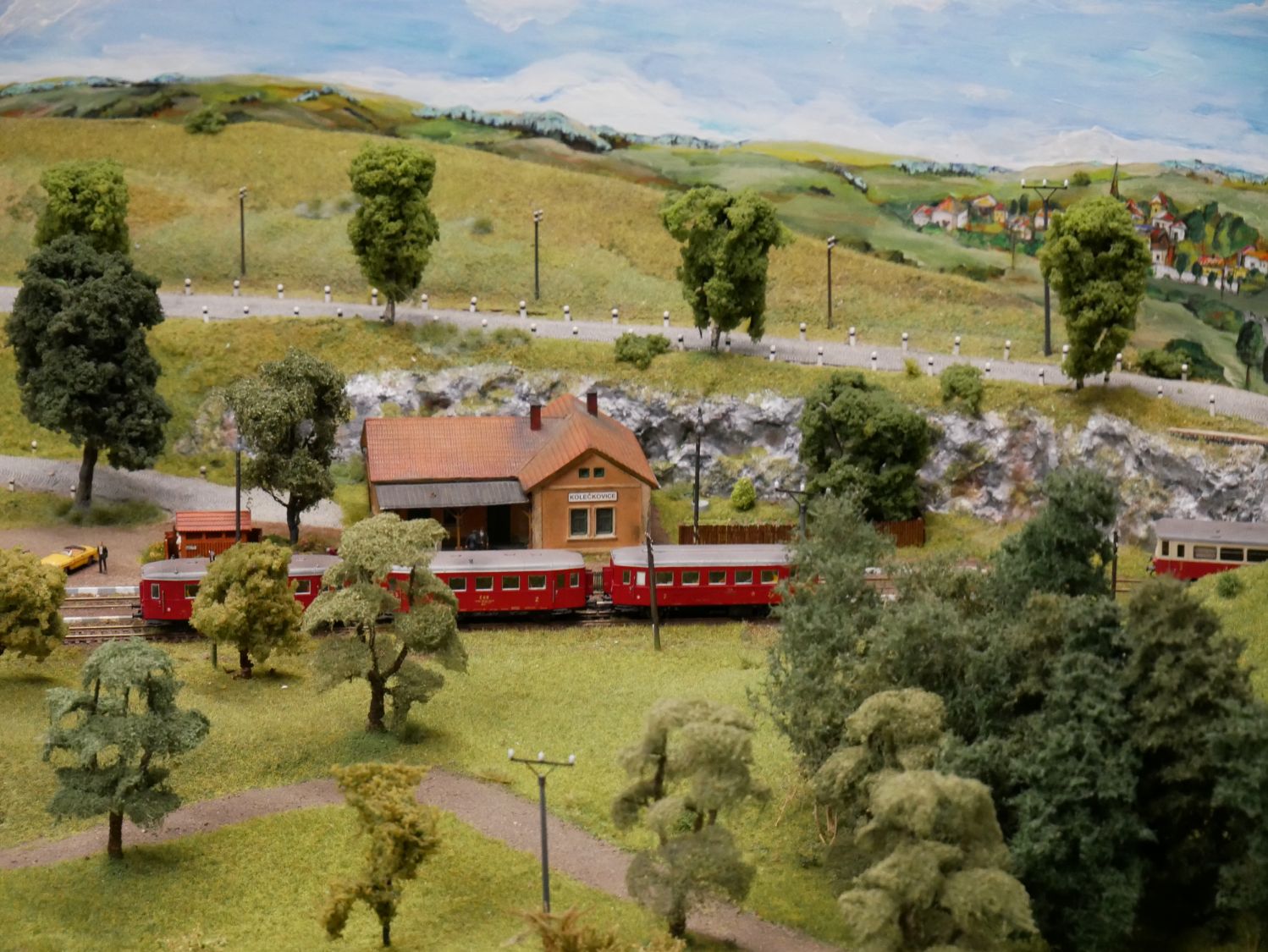 Už cesta do výstavních prostor je lemována nejrůznějšími proprietami bytostně spojených se železnicí. V samotných výstavních prostorách se po kolejích prohání nejrůznější typy lokomotiv a vagonů. Mistrně a do detailů je vyvedena i krajina modelového kolejiště. Takže tu najdete třeba hlídku VB v akci, chlapa na komíně, hasičskou tatru na výjezdu či práškovacího čmeláka. Na silnicích pak wartburgy, trabanty, embéčka, žigulíky, vé3esky, es5, velorexy, zetory, avie, gazy, trambusy či známé autobusy ešemky.