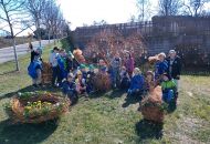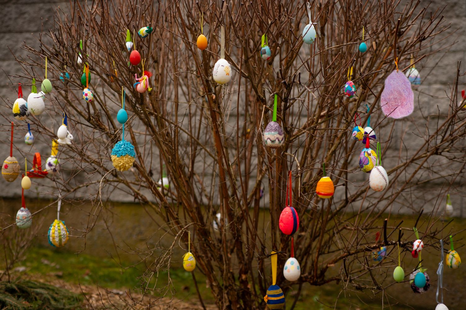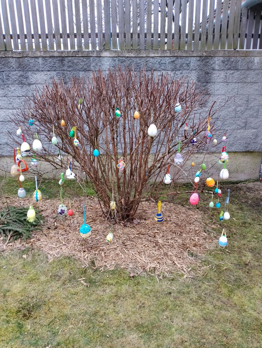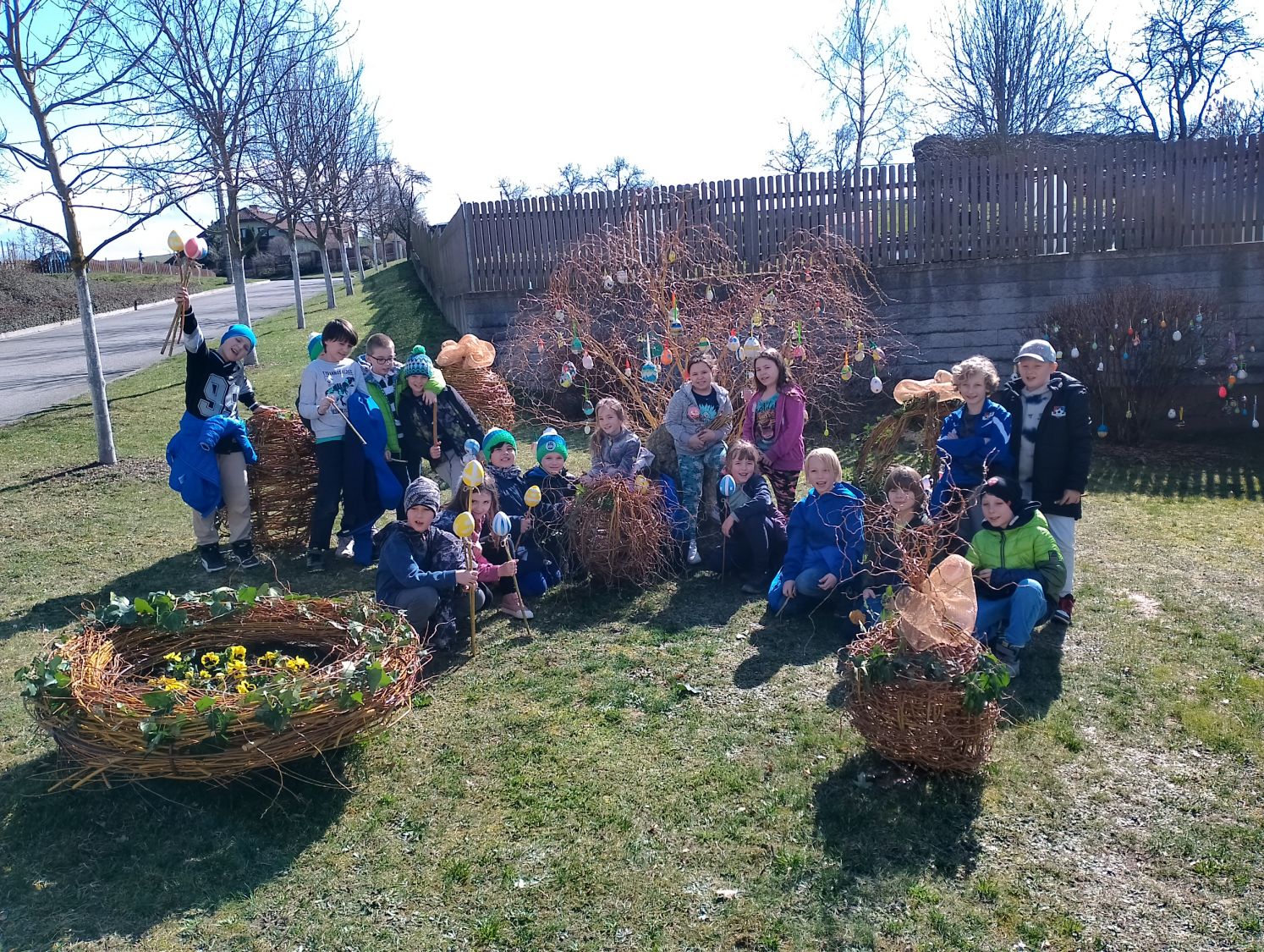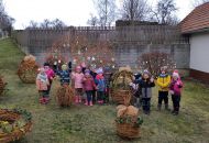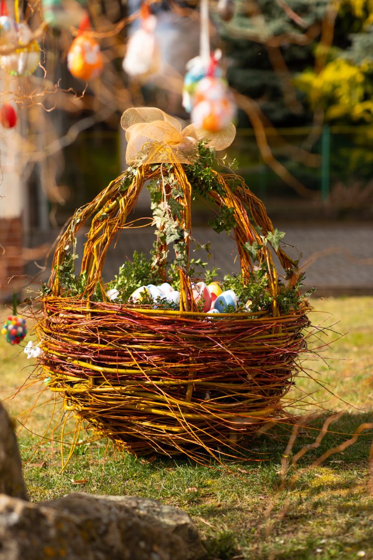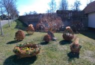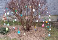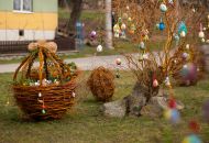 Předchozí roky jsme zavedli tradici velikonočního stromu se zavěšenými kraslicemi od obyvatel, dětí a žáků z místní školky. Letos jsme se inspirovali výzdobou z jižní Moravy, kde jsme viděli velké proutěné a také malované polystyrenové kraslice. Tento nápad se nám velice líbil.