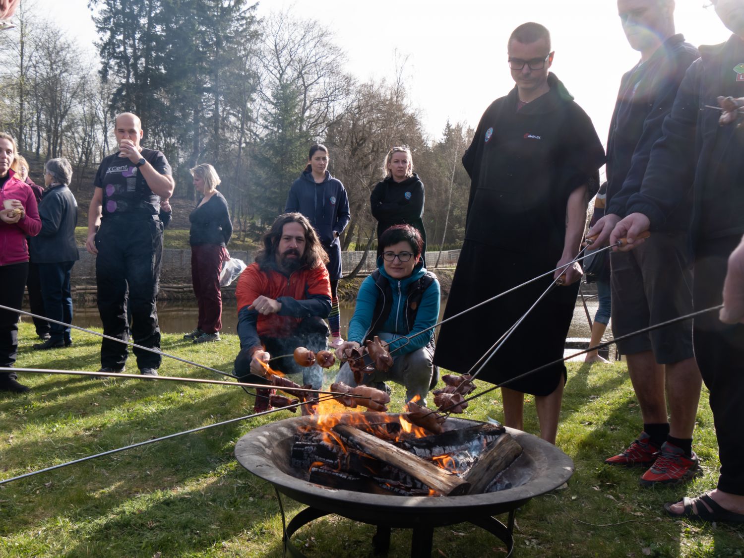 Po úvodních slovech se většina přítomných vrhla na hlavní bod programu, tím bylo otužilecké koupání v podání Klubu ledních medvědů Třebíč, Tuleňů z Rudíkova a místních. Po dokončení okruhů se plavci převlékli a postupně přesunuli k ohni, kde si mohli opéct špekáček.