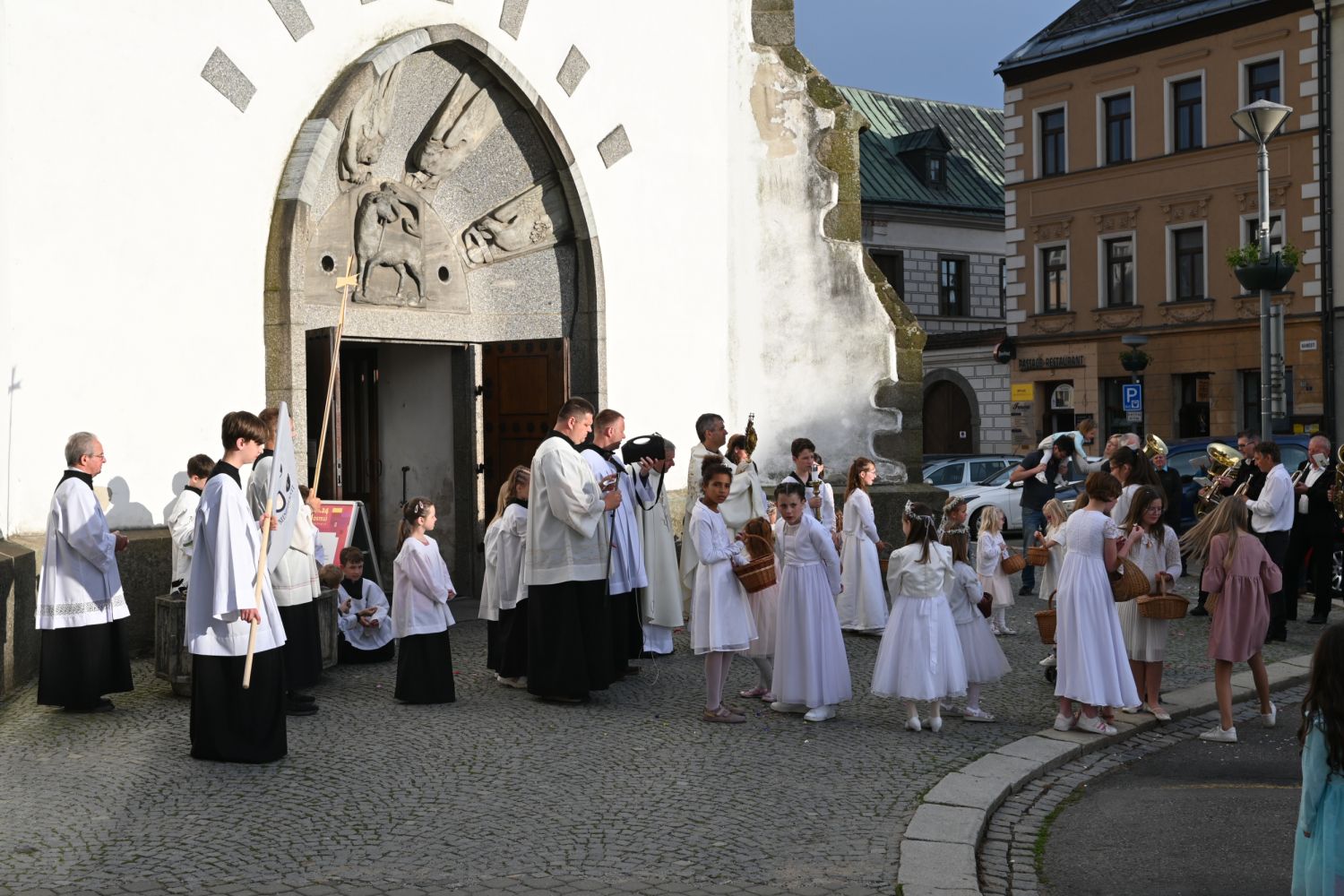 Věřící slavili Boží Tělo, náměstím prošel průvod
