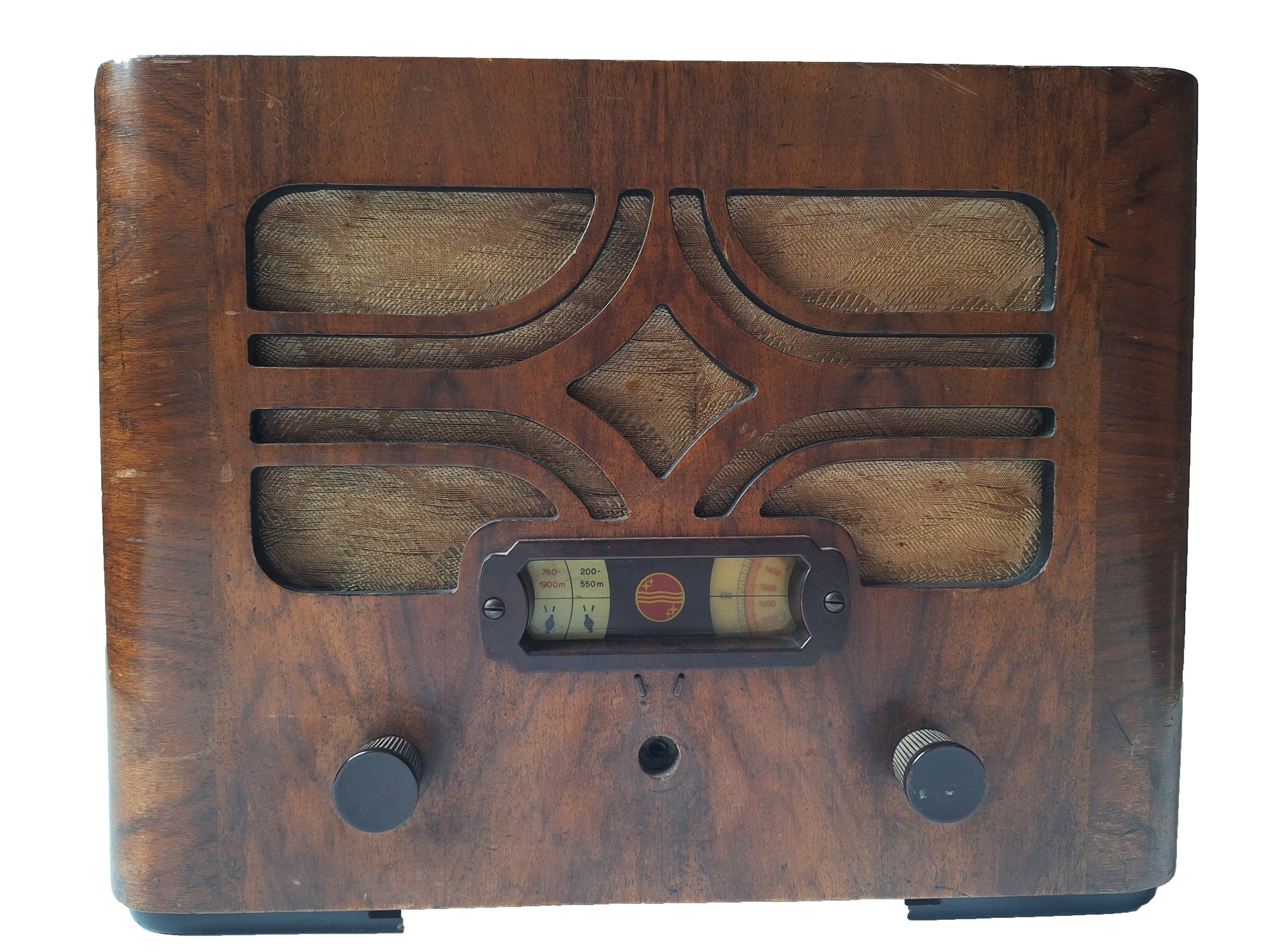 V pozdější době se v domácnostech začalo objevovat také rádio. Ve sbírkách máme například model 521 od firmy Philips, který se vyráběl ve 30. letech minulého století. Na přední straně byla umístěna tři kolečka, pomocí kterých se regulovala hlasitost, přepínal vlnový rozsah a provádělo se samotné ladění.