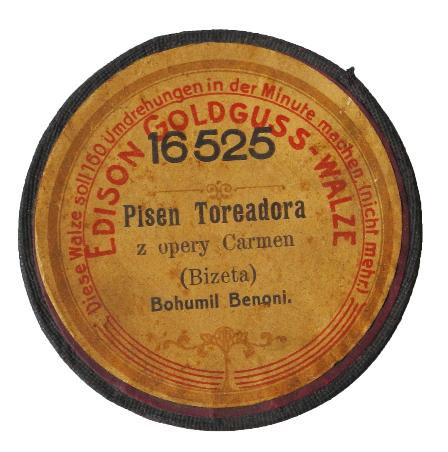 V našem depozitáři k němu nalezneme kolekci dvaceti fonografických válečků, které můžeme považovat za nejstarší typ moderního masově vyráběného zvukového nosiče. Na přelomu 19. a 20. století se při výrobě forem pro odlévání kopií válečků používalo malé množství zlata. Díky tomu byly tyto Edisonovy válečky v německy mluvících zemích označovány jako „Goldguss Walzen" a každý se nachází ve vlastním papírovém obalu s výrobním číslem. Například pod číslem 16525 se skrývá Píseň Toreadora z Bizetovy Carmen.