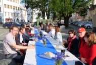 Lidé se sešli u dlouhého stolu a povídali si nejen o festivalu