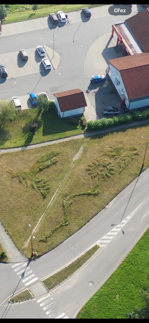 „Na květnatých loukách musí zůstat vždy nějaká mozaika neposečené trávy, aby se zachovaly druhy, které tam žijí a rostou. Rozhodli jsme se pojmout sečení trávy kreativněji. Snažíme se o interakci, aby to začalo dávat smysl i lidem, které jinak květnaté louky vůbec nezajímají,“ vysvětlil Jan Oulehla, který s bratrem Pavlem obě louky u Penny i na místě bývalého domova důchodců seče tímto způsobem již od roku 2022. V roce 2022 tak na loukách vytvořili z trávy srdce a v něm VM a kopretinu a zvonek, v roce 2023 hlemýždě a letos zájemce potěší u Penny marketu včela samotářka a motýl nad kopretinou a na louce po domově důchodců velký motýl.
