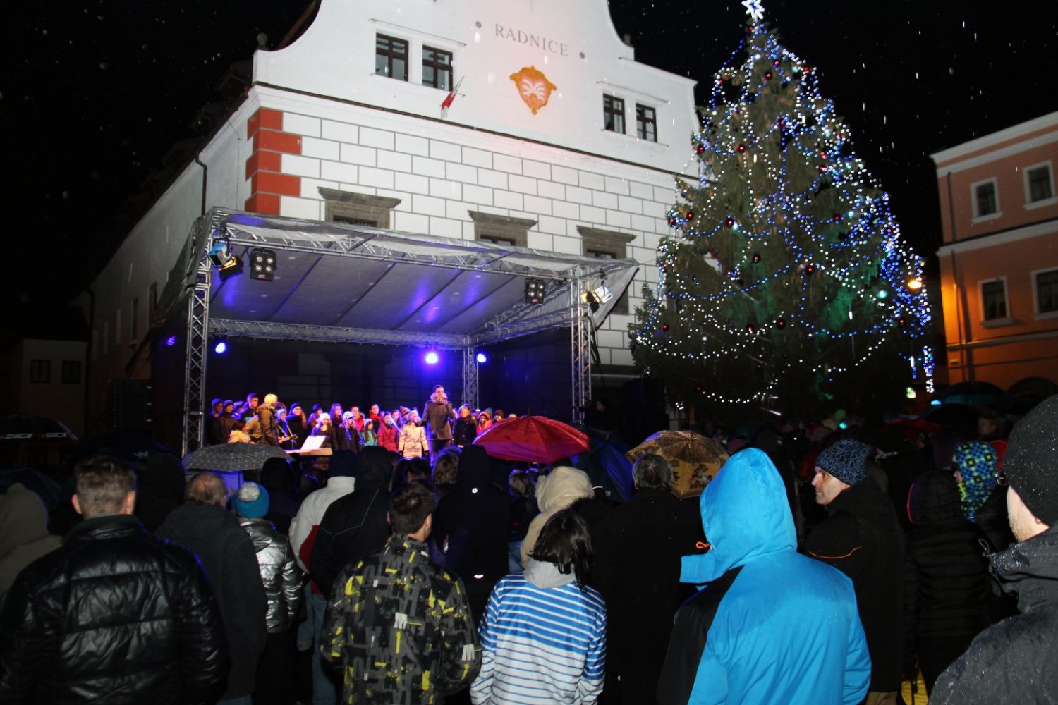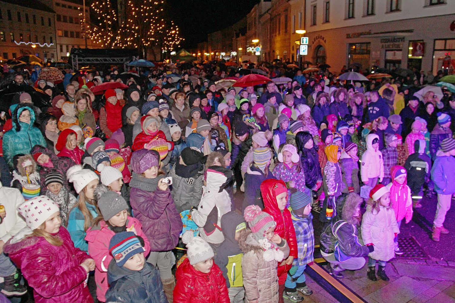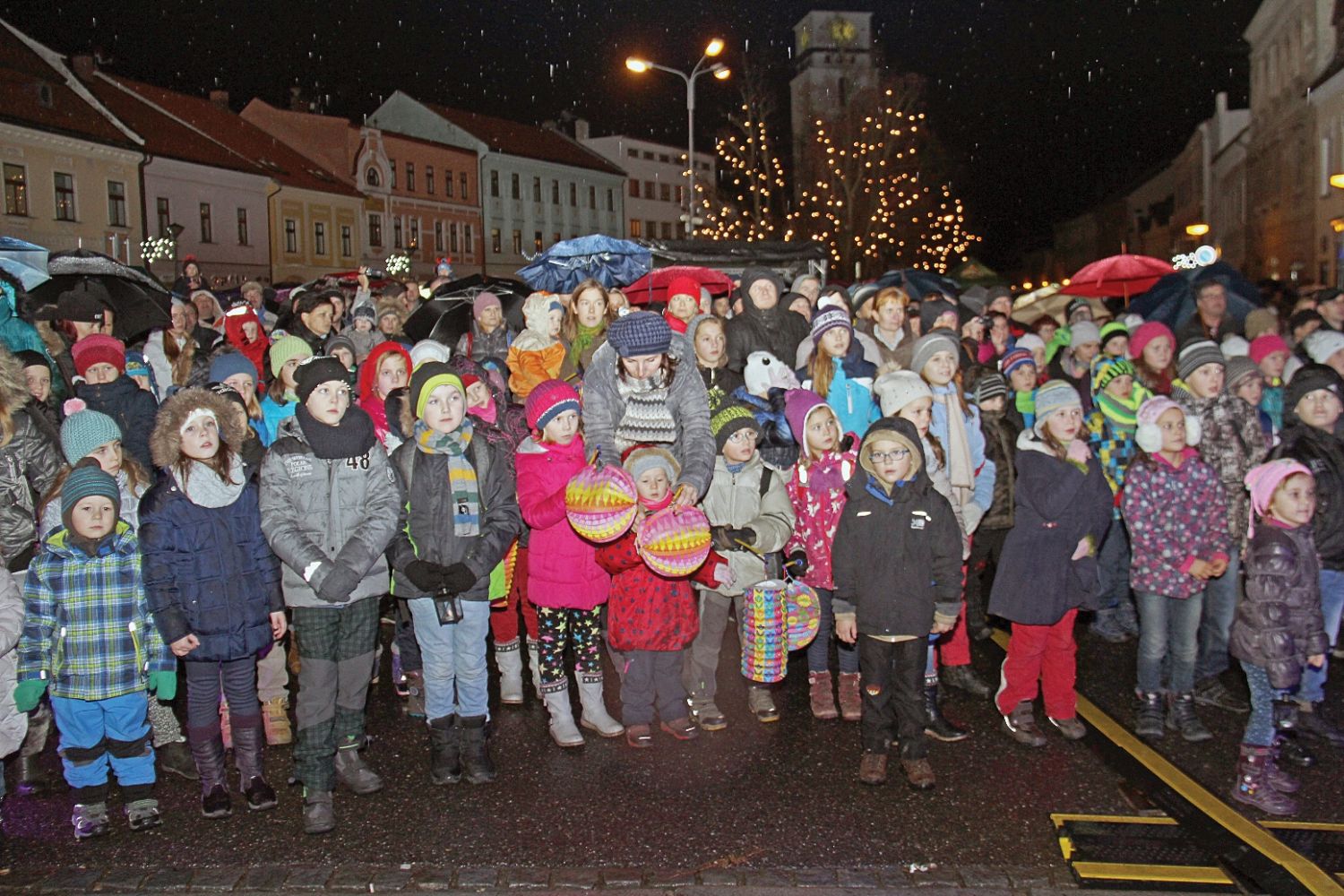 Lidé s deštníky a malé děti s lampiony, svíčkami i prskavkami se sešli v neděli 29. listopadu na velkomeziříčském náměstí, aby společně přivítali příchod adventu. Počasím, jež Vánoce nepřipomínalo ani zdaleka, se odradit nenechali. Společně rozsvítili světýlka nejen na bohatě nazdobeném smrku před radnicí, ale i na lípách a sloupech na náměstí i na Novosadech.