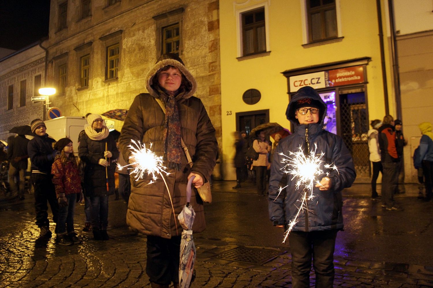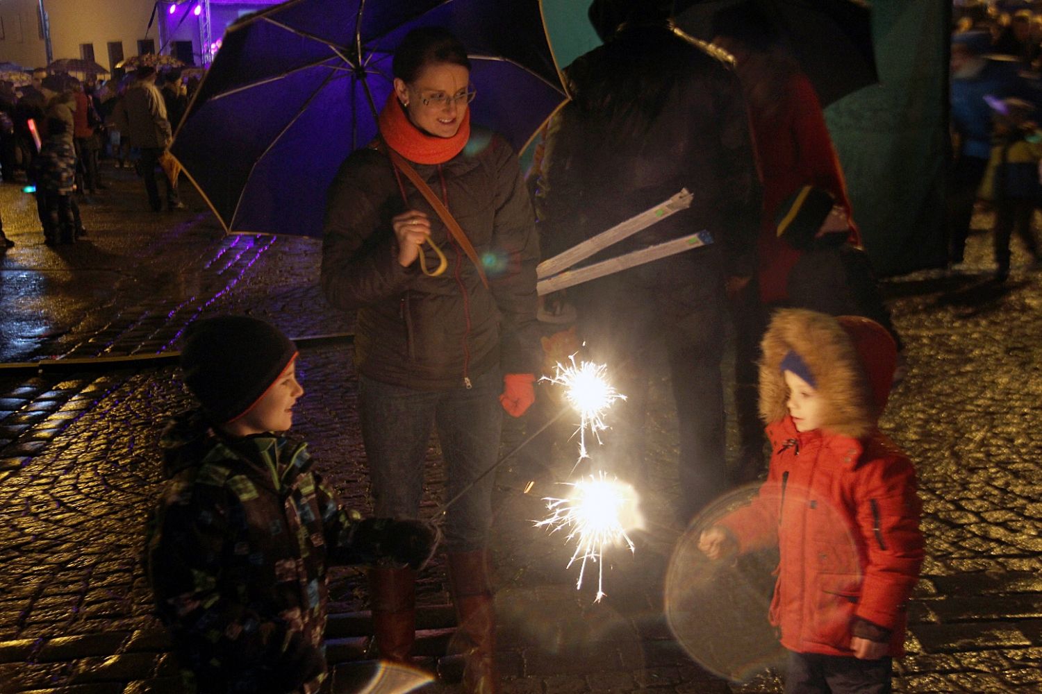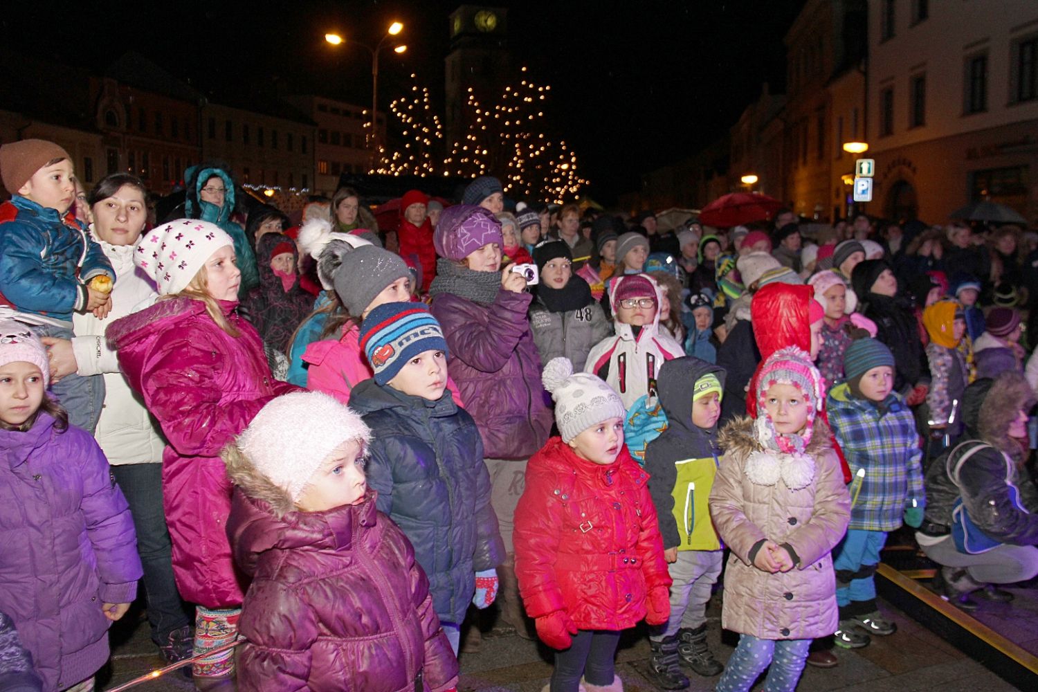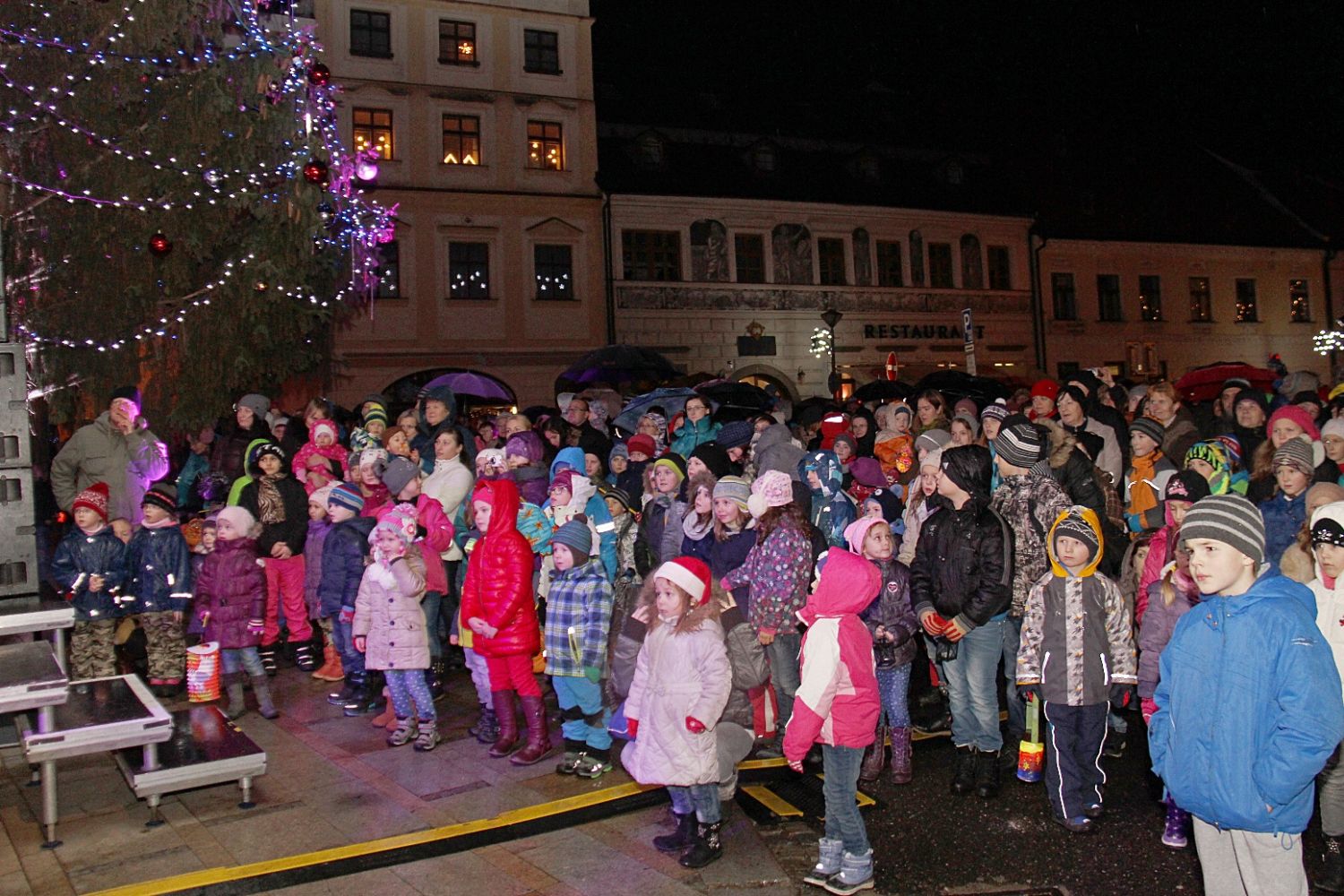 Lidé s deštníky a malé děti s lampiony, svíčkami i prskavkami se sešli v neděli 29. listopadu na velkomeziříčském náměstí, aby společně přivítali příchod adventu. Počasím, jež Vánoce nepřipomínalo ani zdaleka, se odradit nenechali. Společně rozsvítili světýlka nejen na bohatě nazdobeném smrku před radnicí, ale i na lípách a sloupech na náměstí i na Novosadech.