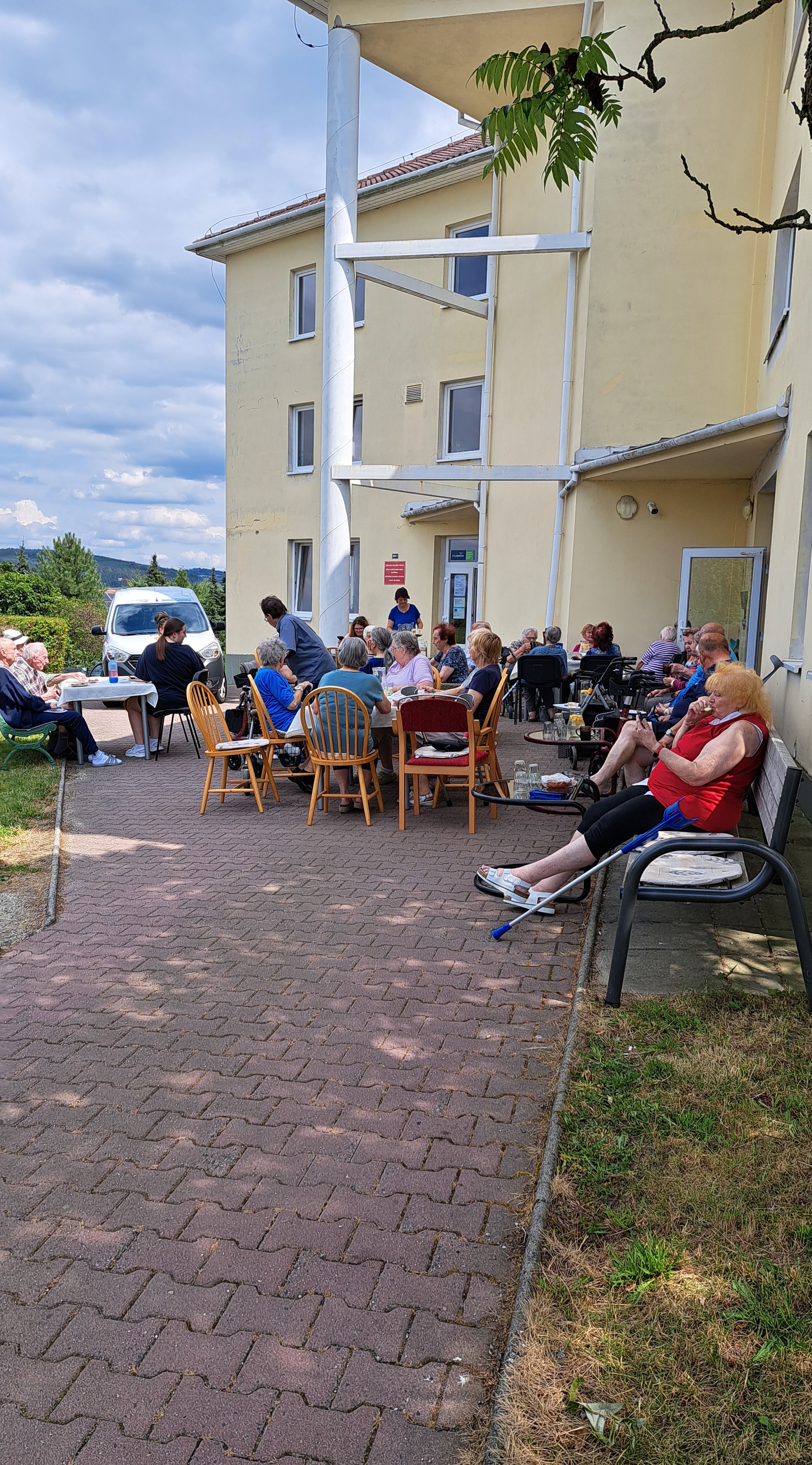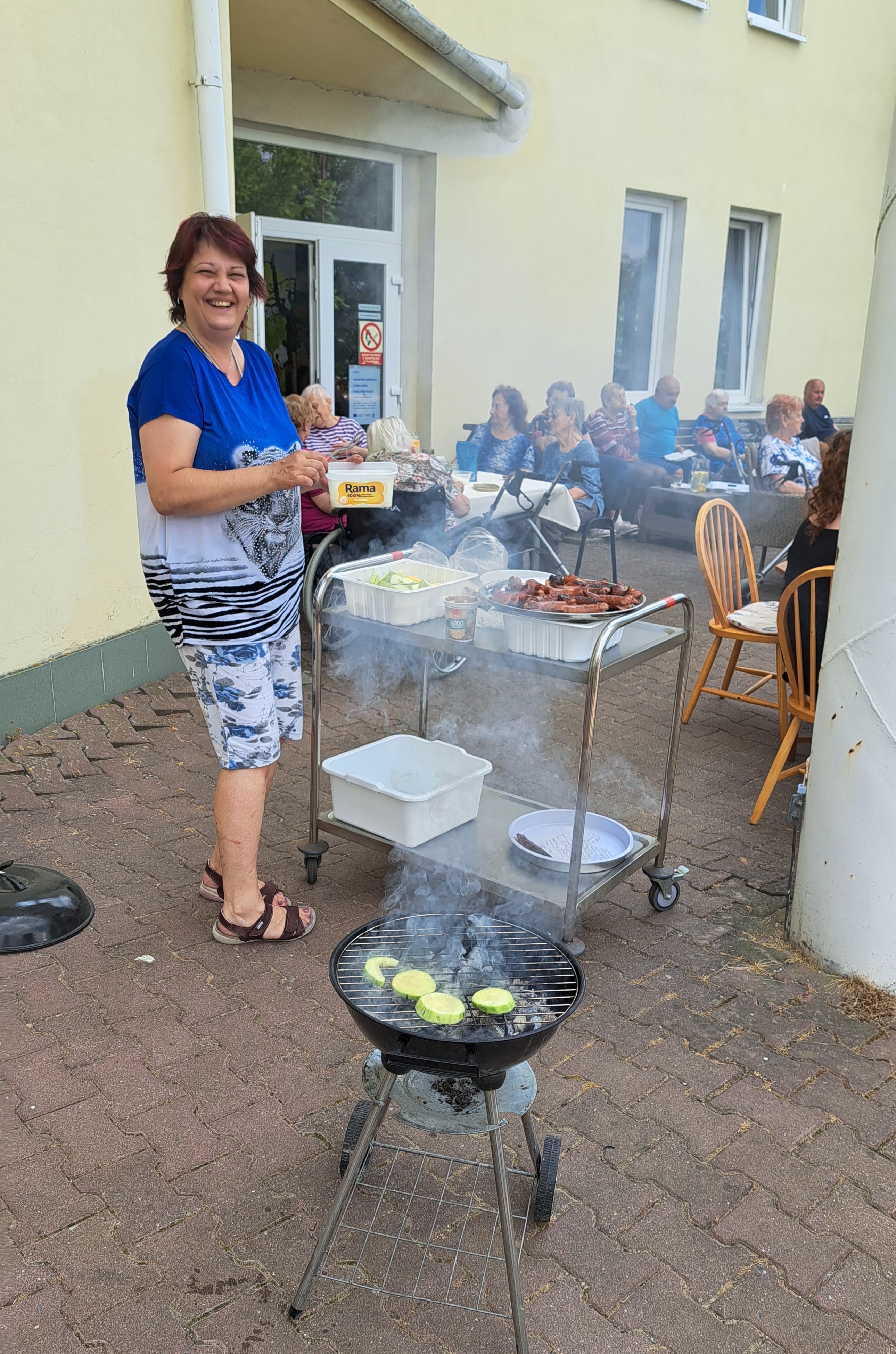 Jedno teplé červencové odpoledne si klienti domu s pečovatelskou službou díky naší pečovatelce Radce a jejím organizačním schopnostem opět užili grilování. Radka zajistila výborné občerstvení, a to oblíbené klobásy. Grilovala jich na osmdesát kusů. Někteří klienti si je objednali i s sebou na večeři. Posezení přichystala před domem s pečovatelskou službou, a tak bylo více míst a prostoru. Na setkání přijely i klientky z dalších pečovatelských domů z Komenského a Strmé. Jako bonus bylo pozvání skvělého hudebního dua, kdy klientům na kytaru hrál a zpíval pan Miloš z Velkého Meziříčí s dcerou. Zpěv patří celkově k velmi oblíbeným činnostem aktivizačních setkávání. Na akci přišlo asi 30 obyvatel DPS, přidali se i klienti pobytové odlehčovací služby, které doprovodily naše pečovatelky. Bylo to příjemné posezení a už teď se naši klienti těší na další grilování.