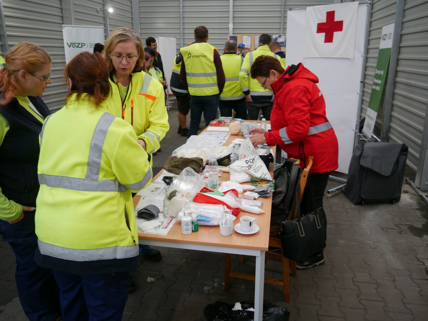 Červený Kříž Třebíč připravil odborné školení první pomoci při nejrůznějších událostech – vyražení dechu, úraz, spolknutí předmětu, ztráta vědomí – správného použití obvazu i vhodného vybavení lékárničky.