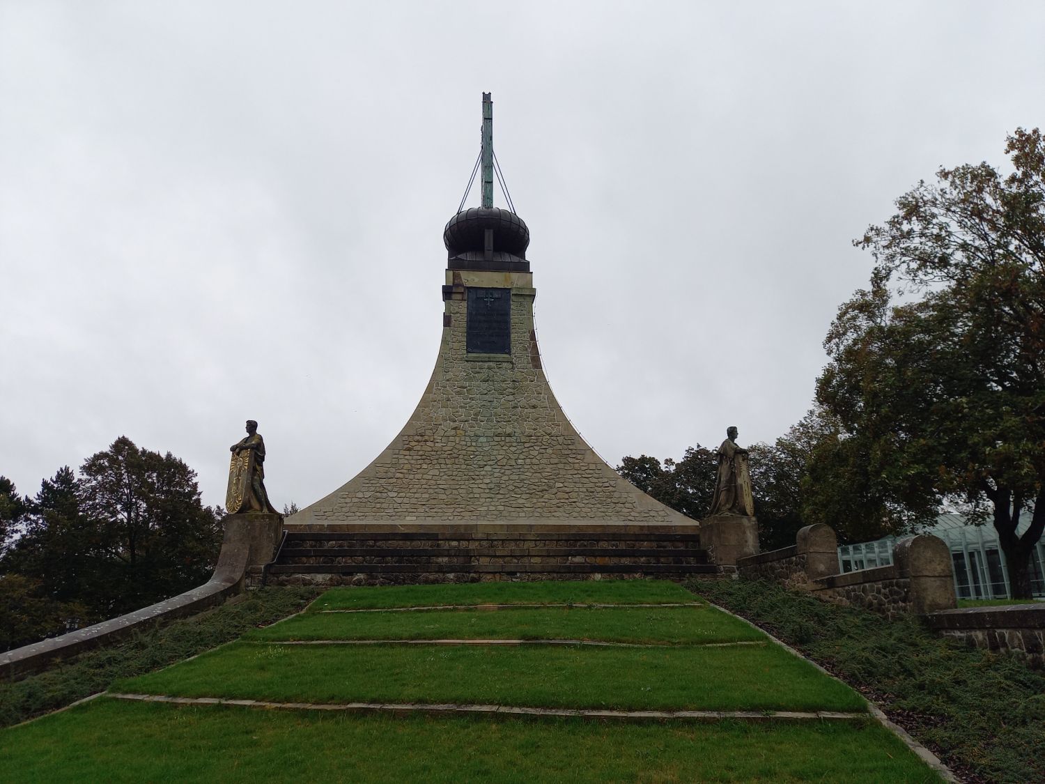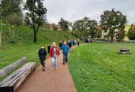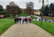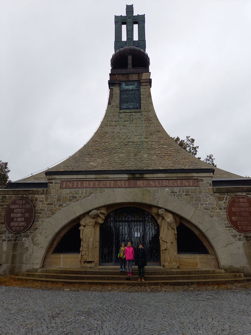 Našim dalším cílem byl Památník Mohyla míru, který byl vystavěn na počest obětí bitvy u Slavkova (2. 12. 1805) podle záměru duchovního a pedagoga Aloise Slováka jako naplnění jeho vize učinit z centra někdejšího bojiště „místo světla", memento válek. Mohyla míru je dominantou i přirozeným středem chráněné památkové zóny Slavkovské bojiště. V muzejním objektu sousedícím s Památníkem jsme navštívili stálou multimediální expozici Bitva tří císařů. Slavkov/Austerlitz 1805, která netradičním, ale velice zajímavým a poutavým způsobem zpřístupňuje slavkovskou bitvu. V muzejním pavilonu jsme se pak v expozici nazvané Fenomén Austerlitz seznámili s tím, jak bitva u Slavkova rezonovala v myslích literátů, hudebníků, filmařů.