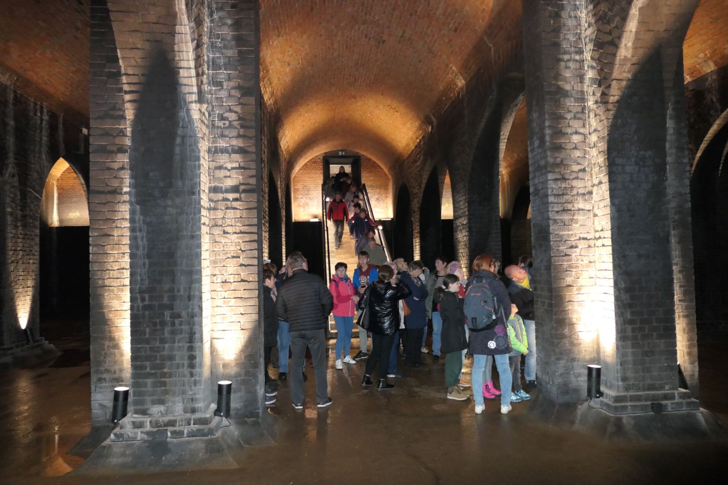 Nasyceni dobrým jídlem, ale také dopoledními zážitky jsme pokračovali v naší cestě, která směřovala do Brna na Žlutý kopec. Udělali jsme ještě krátkou zastávku v příjemné cukrárně v Chrlicích a potom už směřovali k unikátní technické památce. Postupně jsme navštívili všechny tři vodojemy, z nichž nejstarší byl postaven v roce 1874 podle projektu Londýňana Thomase Docwryho na severozápadní straně areálu v blízkosti ulice Tvrdého. Jedná se o unikátní vodohospodářské dílo evropského významu. Objem tohoto vodojemu činí více než 9,5 milionu litrů vody.