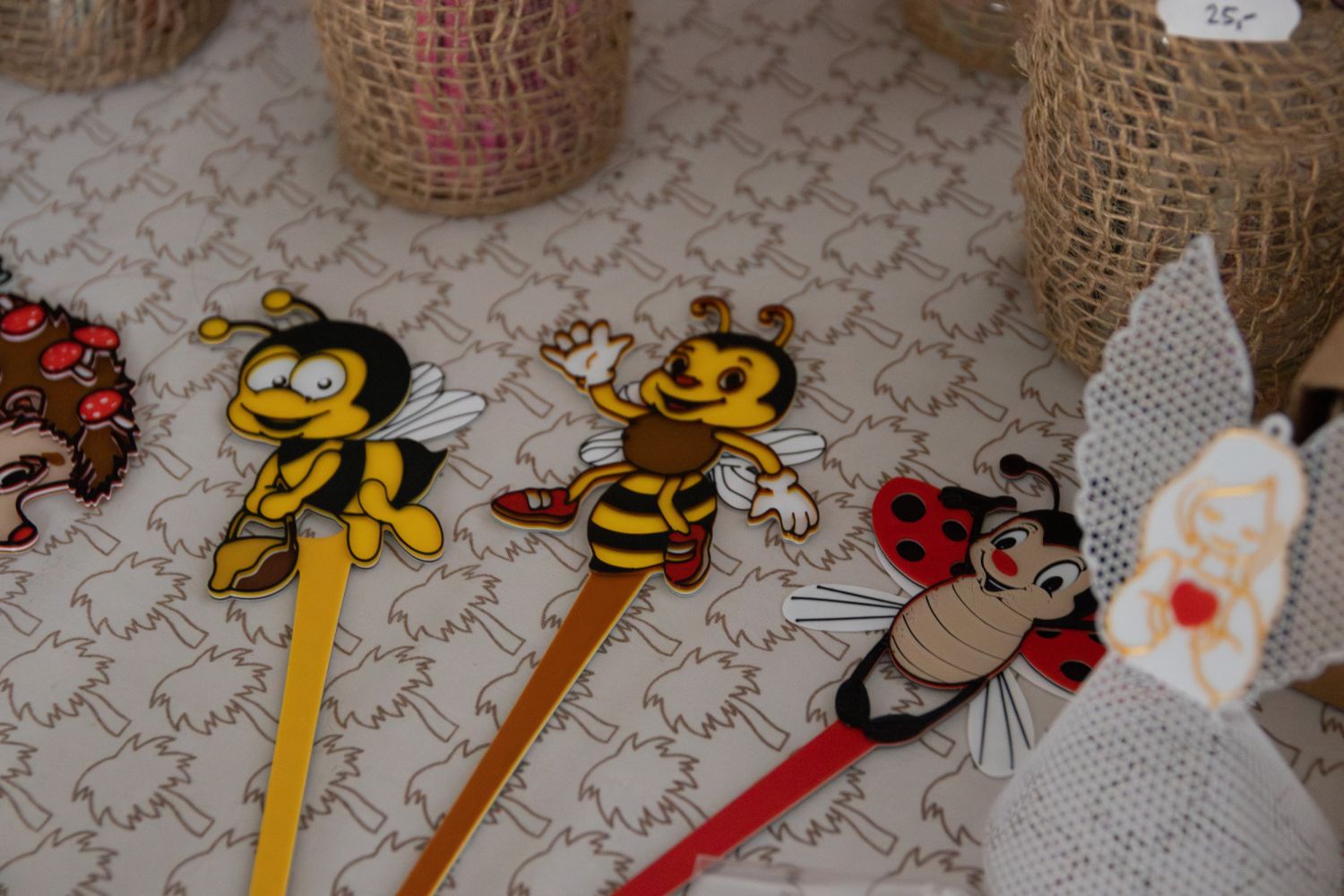 Zakoupit jste si mohli med, medovinu, modelované svíčky, vykrajovátka na perníčky, knihy o včelaření, ale i profesionální výbavu k včelaření. Vystaveny zde byly i neprodejné exponáty jako klobouky, medomety, dýmáky, opalitové značky na včelí matky, acetonový fix a podobně. Nechyběly zde ani hádanky od Chaloupek pro malé i velké.